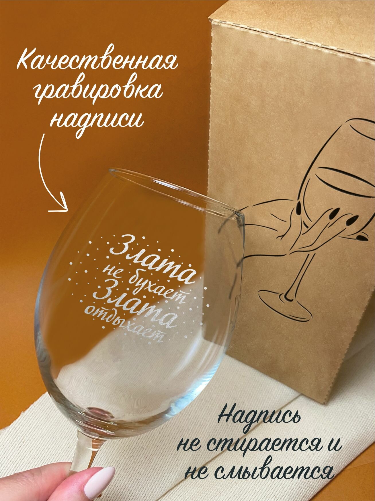 Отзывы на Бокал " Злата не бухает, отдыхает " в подарочной коробке для красного вина , для белого вина , 550 мл, 1 шт