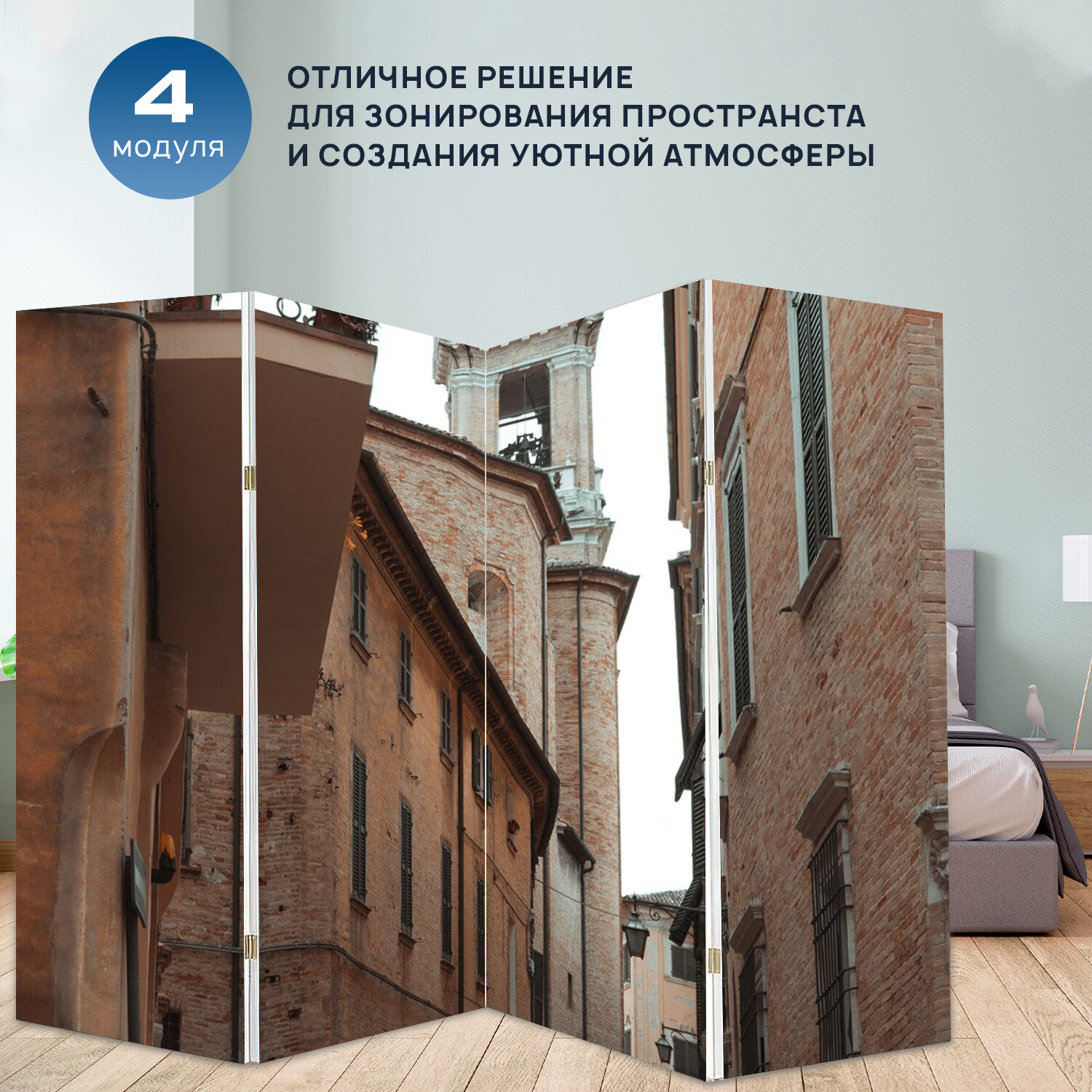 Отзывы на Ширма перегородка с принтом "Аллея, здания, городок" на холсте - 200x160 см. для зонирования, раскладная