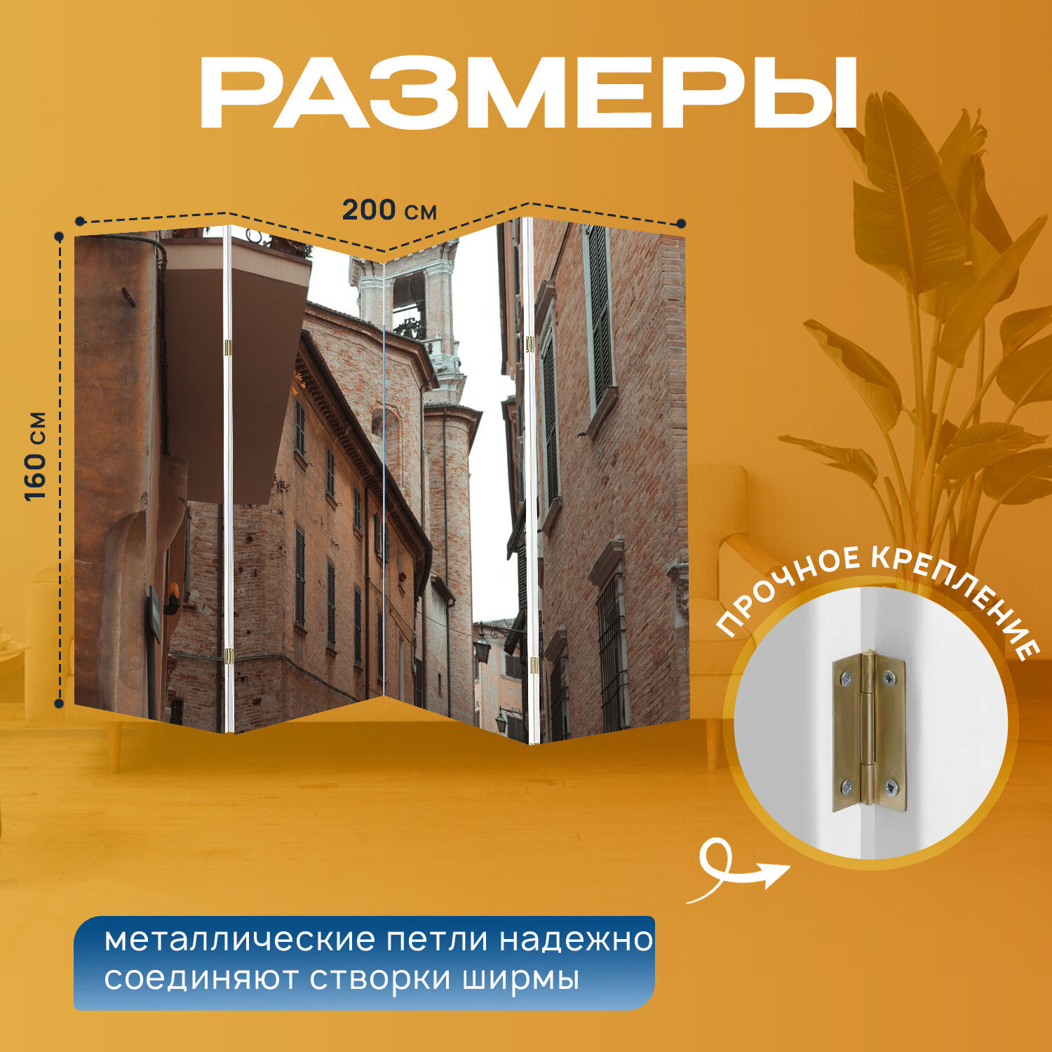 Ширма перегородка с принтом "Аллея, здания, городок" на холсте - 200x160 см. для зонирования, раскладная информация: