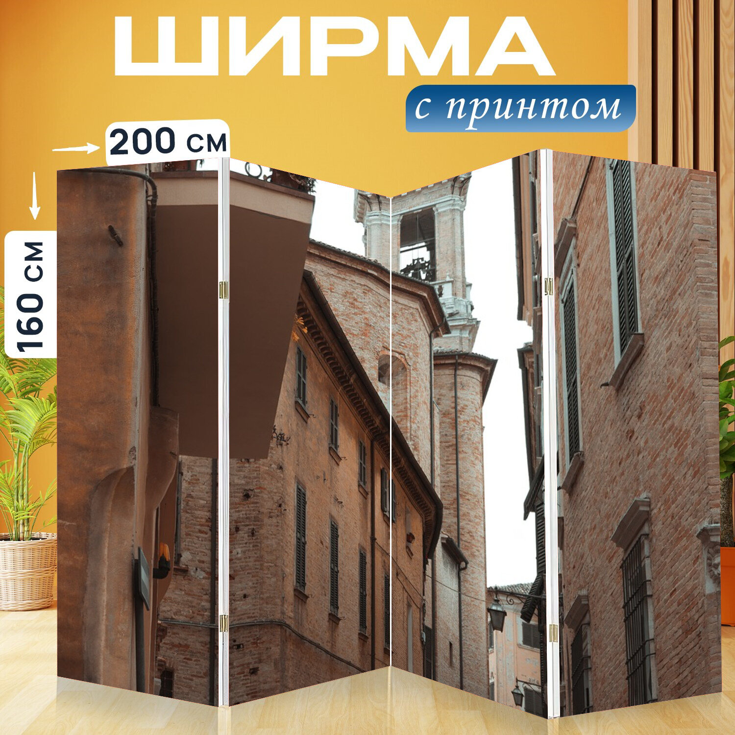 10 цен на Ширма перегородка с принтом "Аллея, здания, городок" на холсте - 200x160 см. для зонирования, раскладная