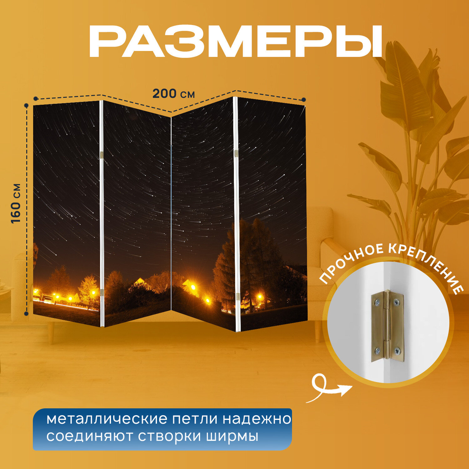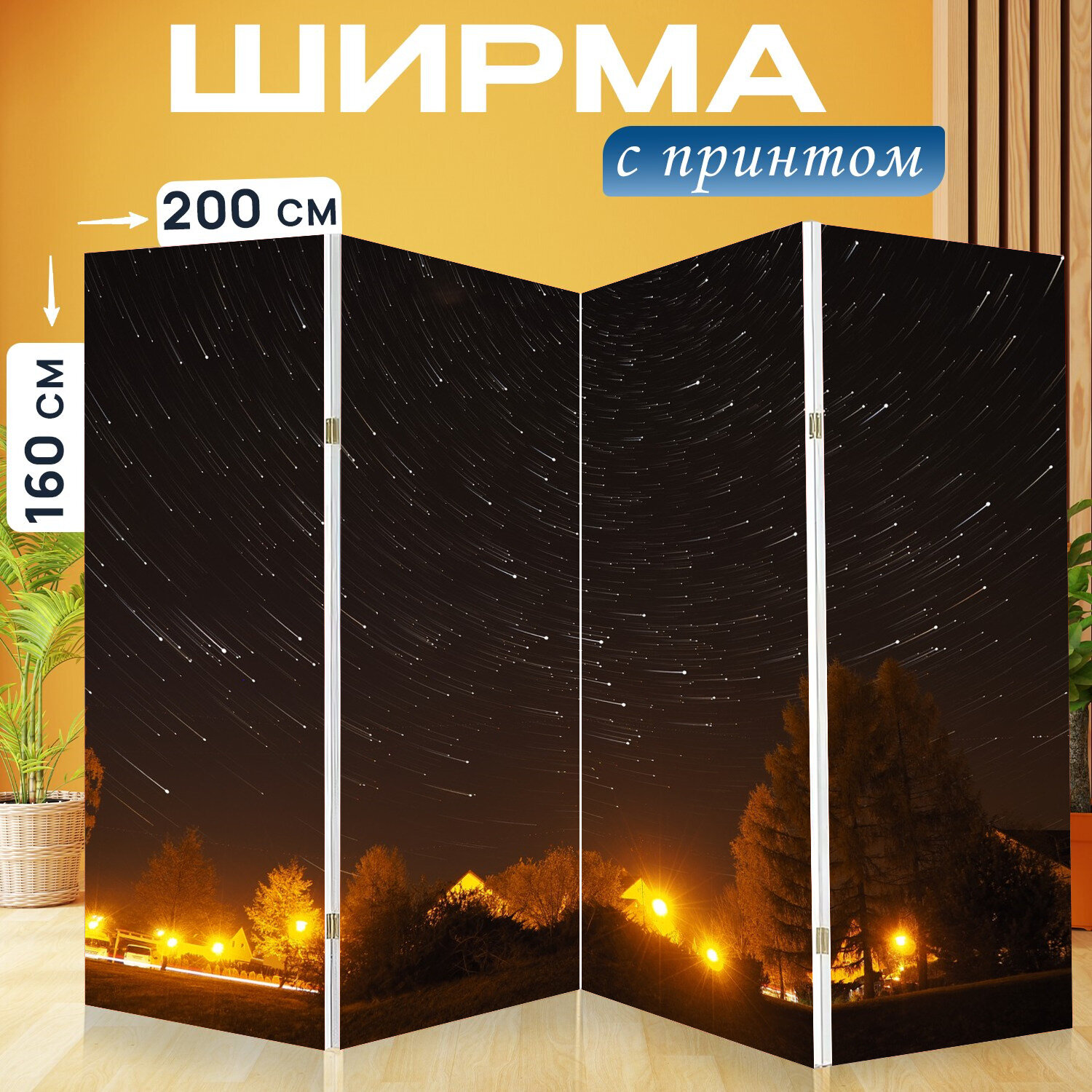 10 цен на Ширма перегородка с принтом "Звезды, ночь, свет" на холсте - 200x160 см. для зонирования, раскладная
