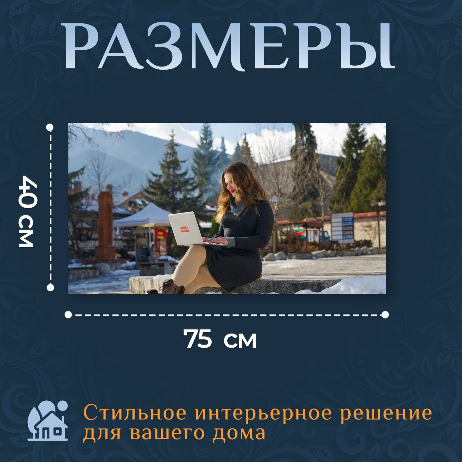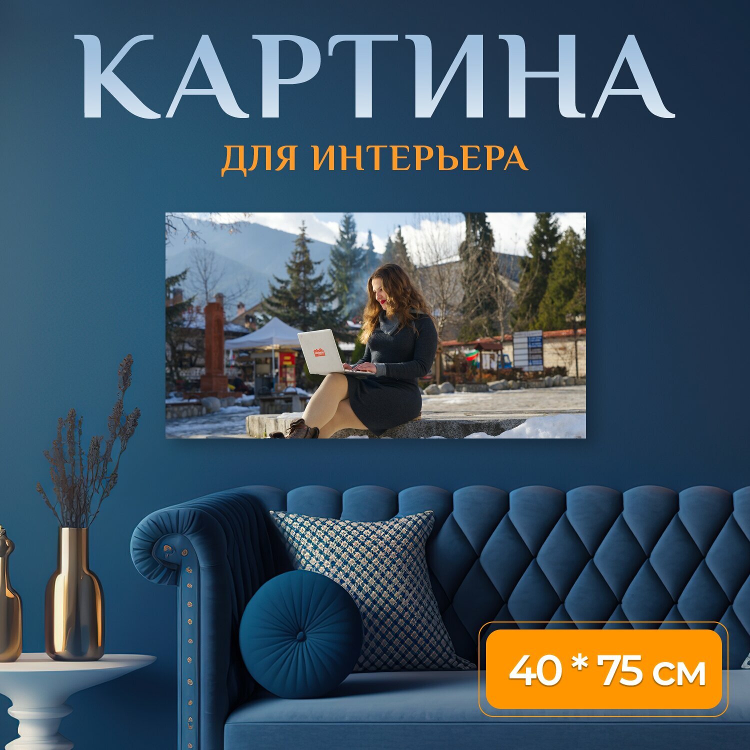 10 цен на Картина на холсте "Удаленная работа, горы, цифровой кочевник" на подрамнике 75х40 см. для интерьера