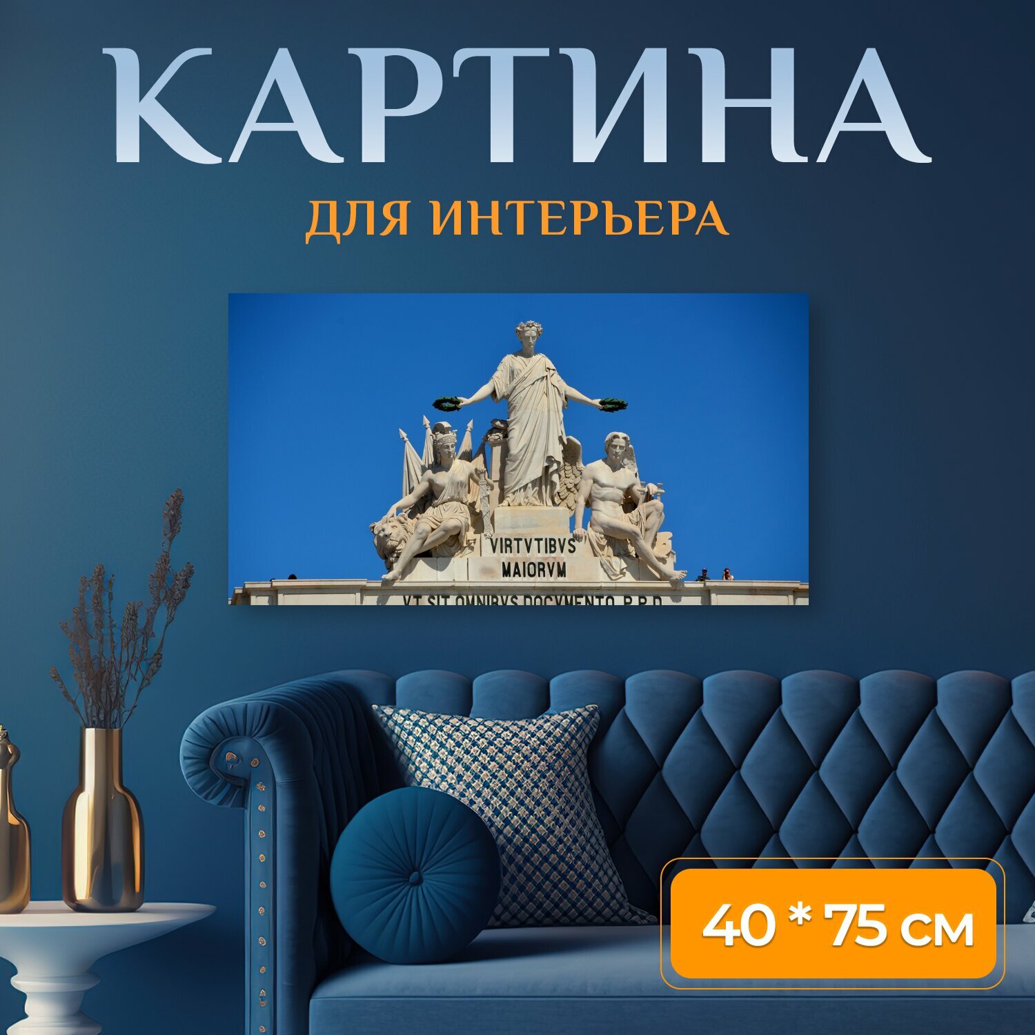 Картина на холсте "Памятник, лиссабон, португалия" на подрамнике 75х40 см. для интерьера информация: