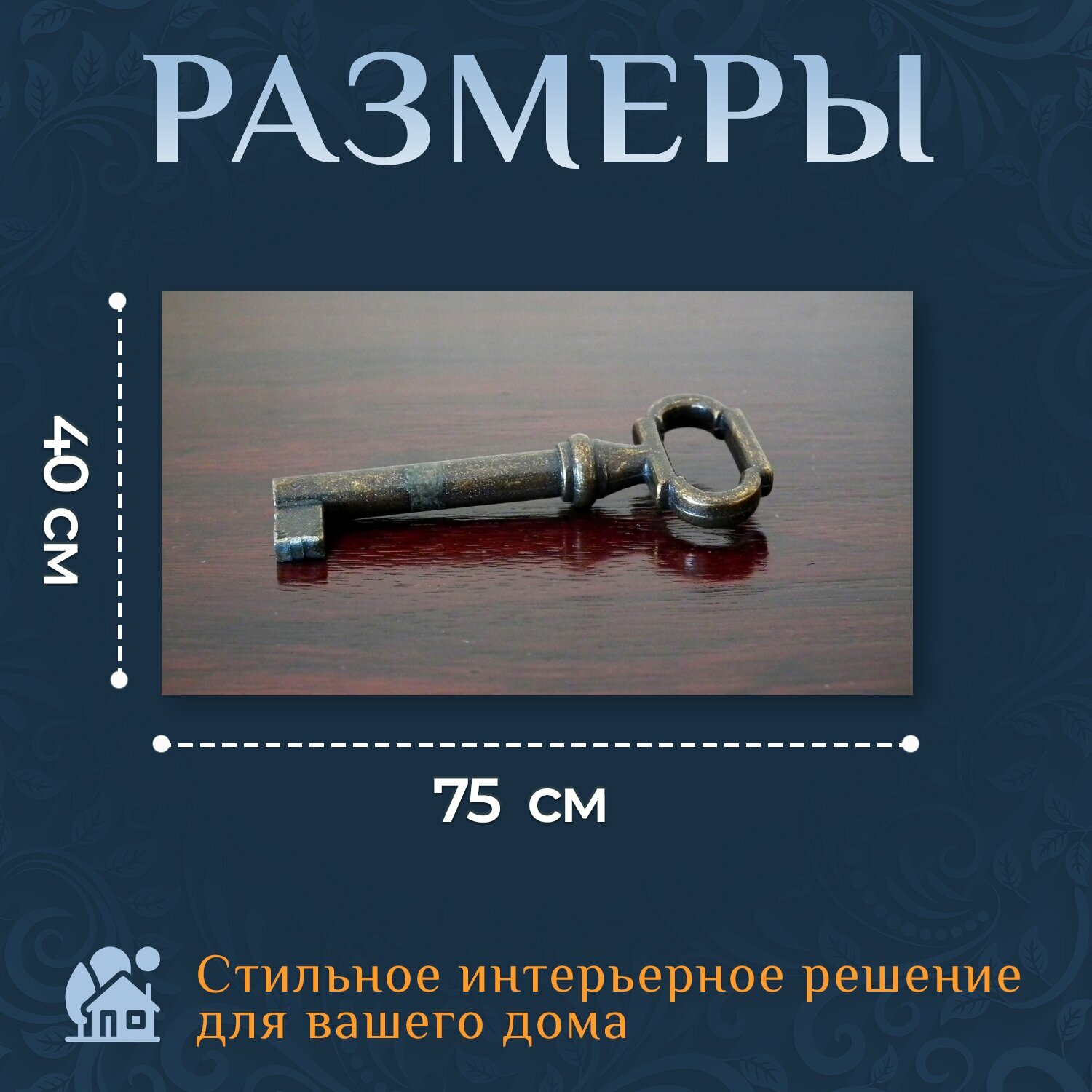 Картина на холсте "Ключ, старый, античный" на подрамнике 75х40 см. для интерьера информация:
