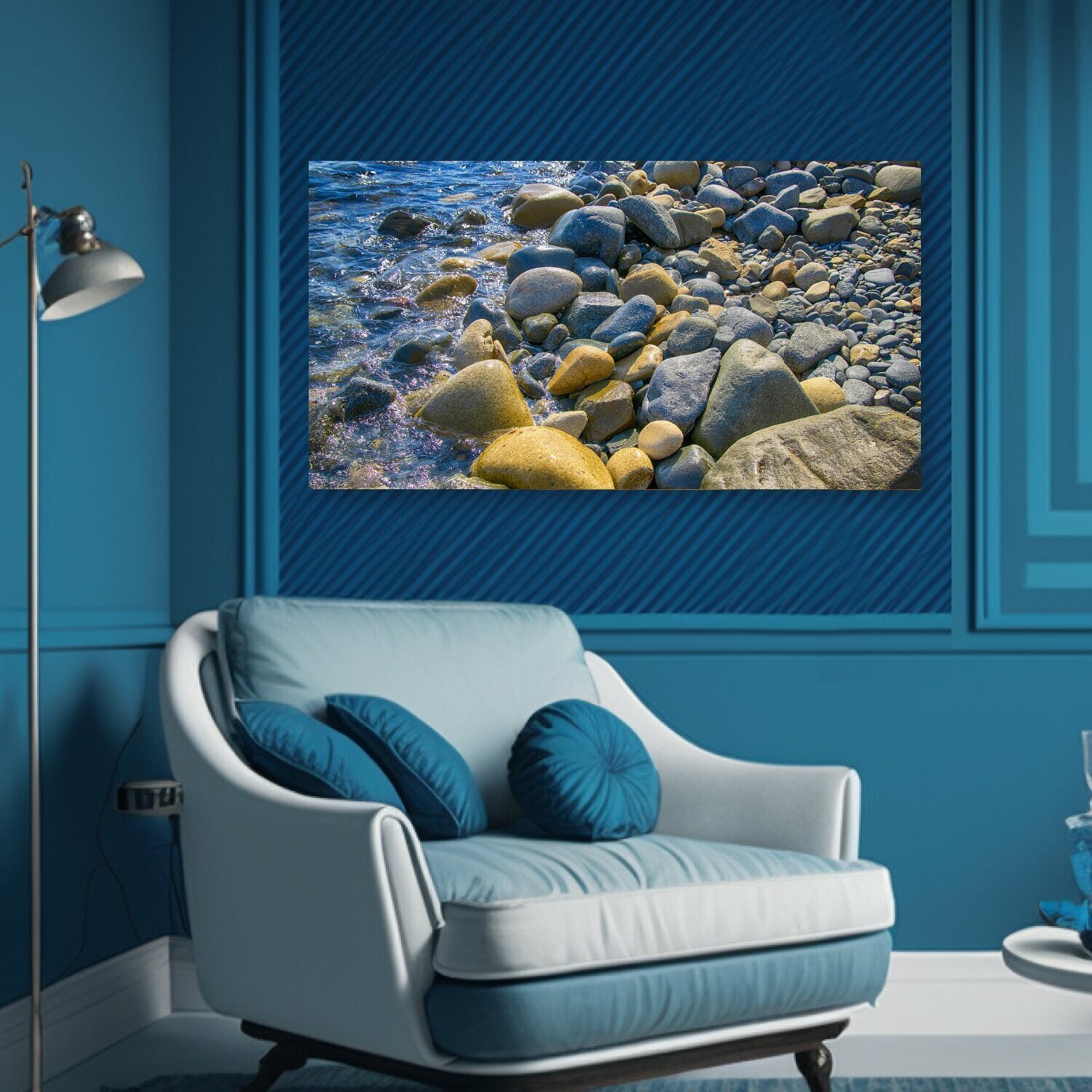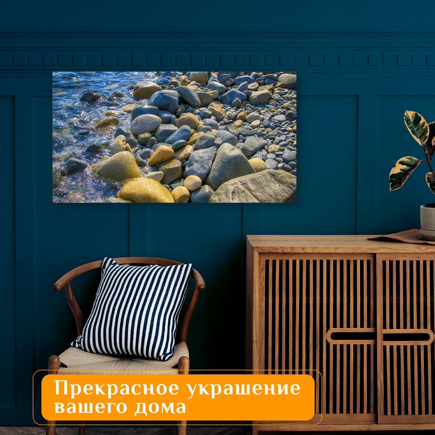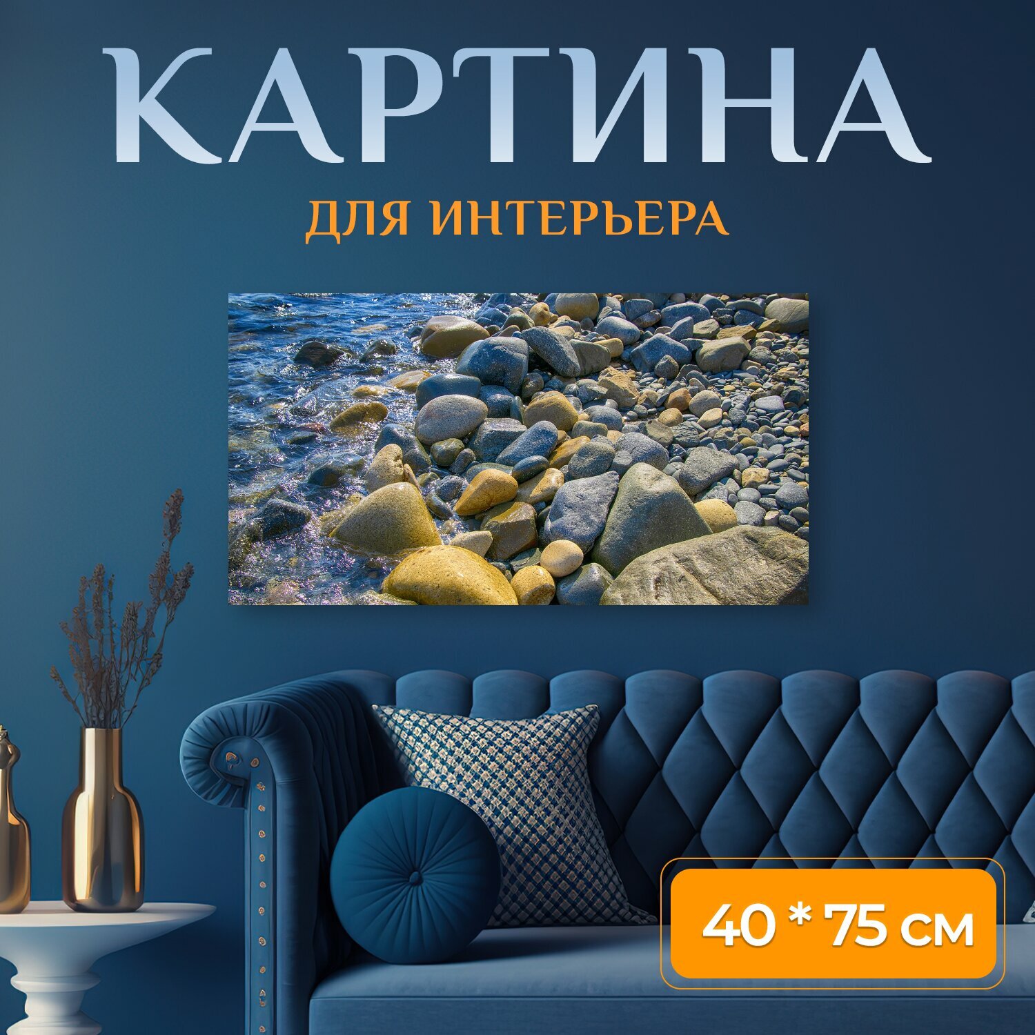 Картина на холсте "Камни, море, это стоит" на подрамнике 75х40 см. для интерьера информация: