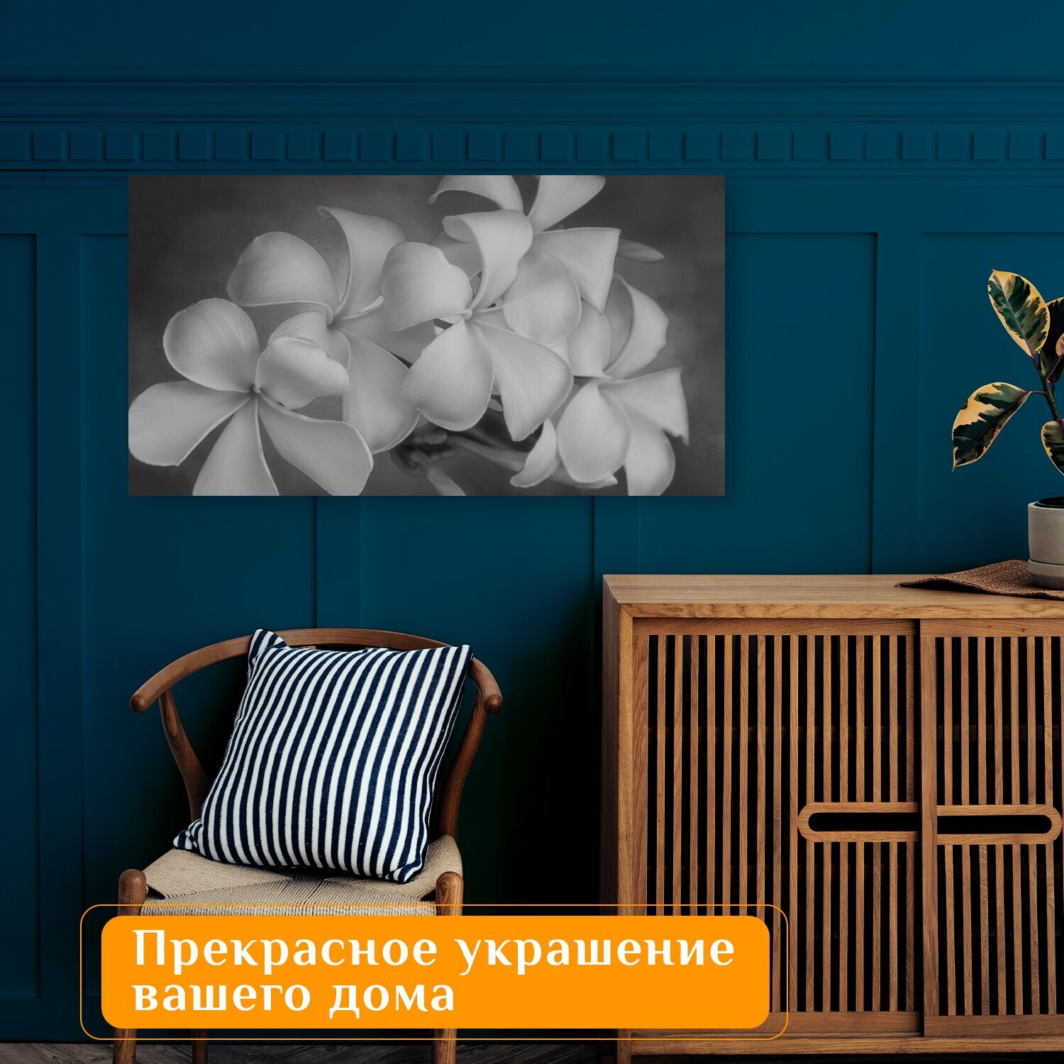 10 цен на Картина на холсте "Цветы, белый, чернить" на подрамнике 75х40 см. для интерьера
