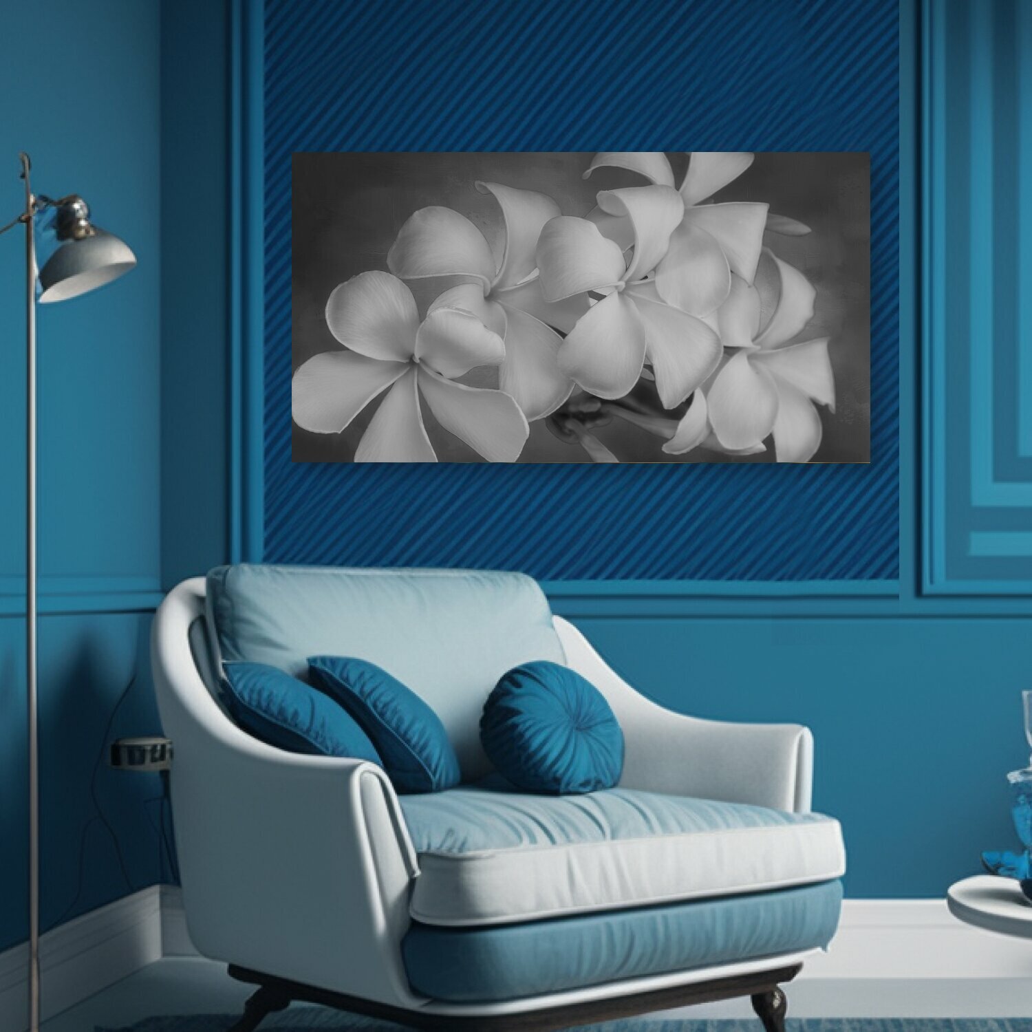 Картина на холсте "Цветы, белый, чернить" на подрамнике 75х40 см. для интерьера информация: