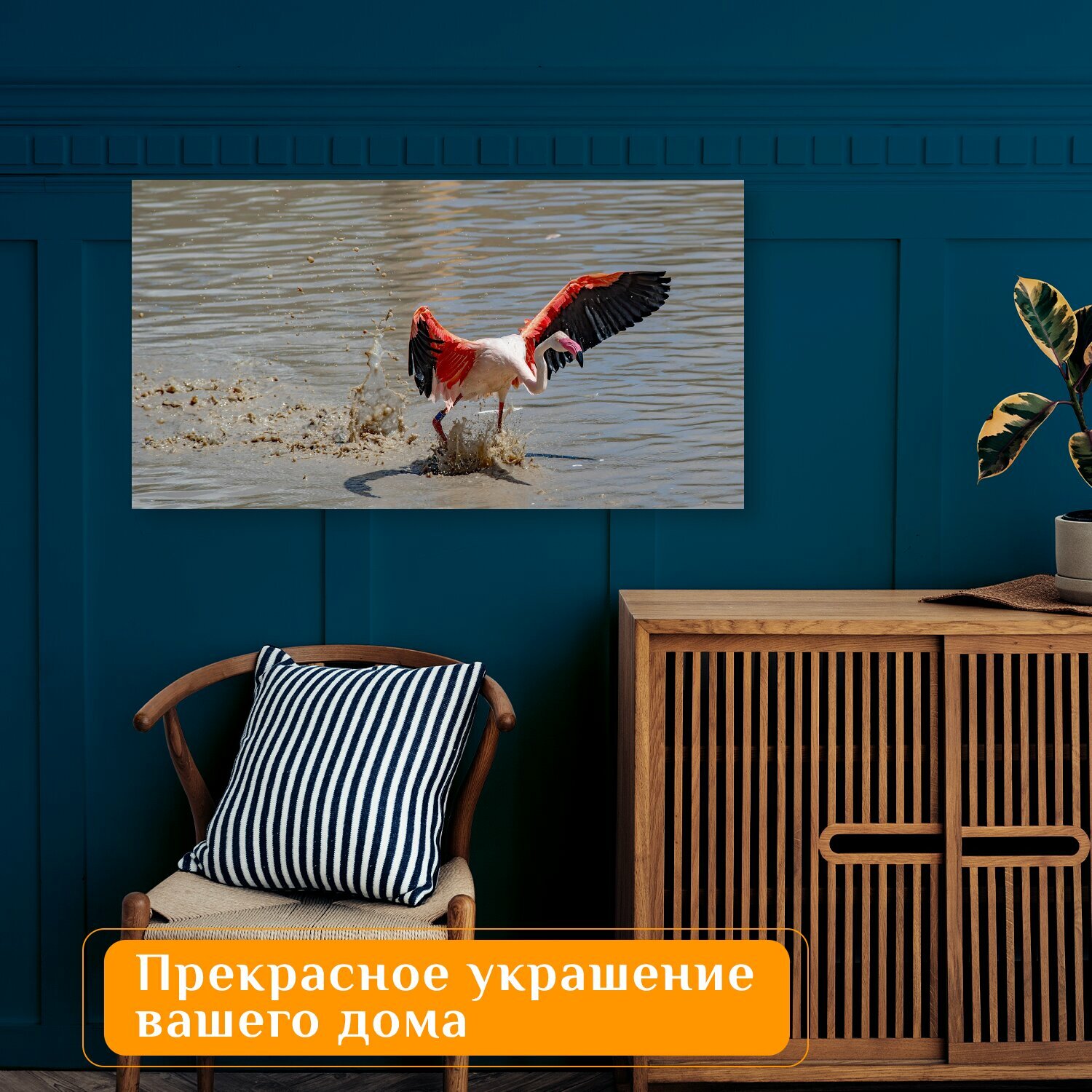 Отзывы на Картина на холсте "Фламинго, птица, розовый" на подрамнике 75х40 см. для интерьера