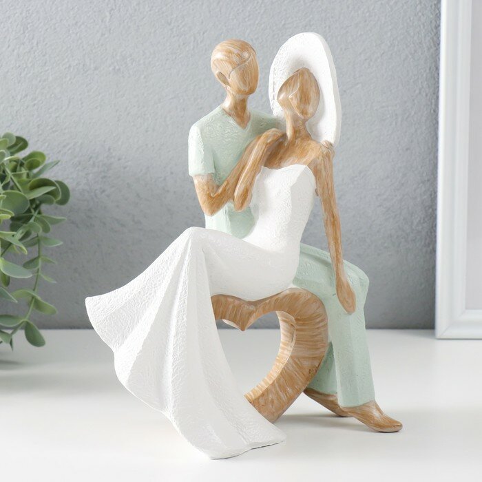 10 цен на Сувенир полистоун "Ретро. Влюблённые сидят на сердце" бело-зелёный 18х11х23,5 см