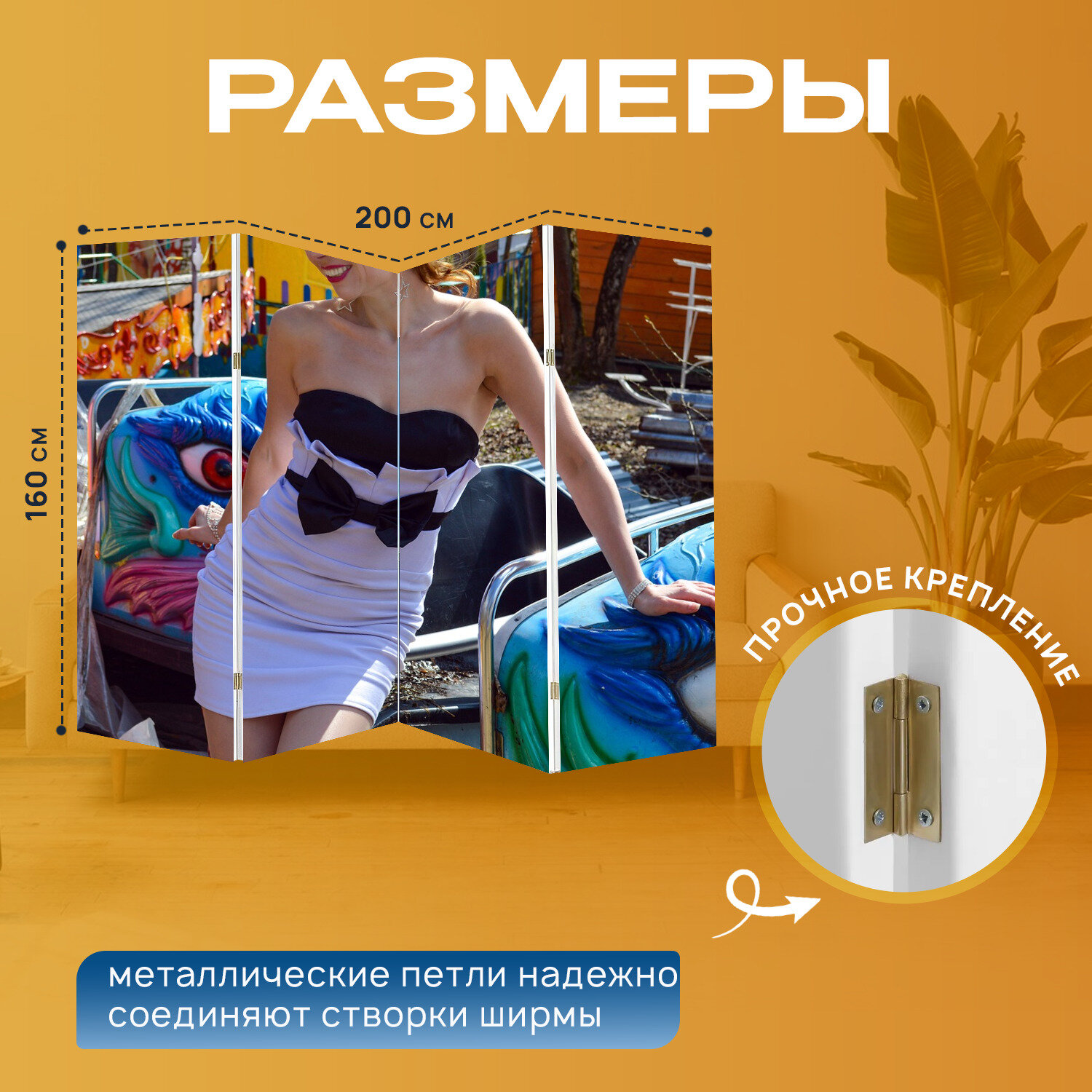 Ширма перегородка с принтом "Парк аттракционов, шапито, цирк" на холсте - 200x160 см. для зонирования, раскладная информация: