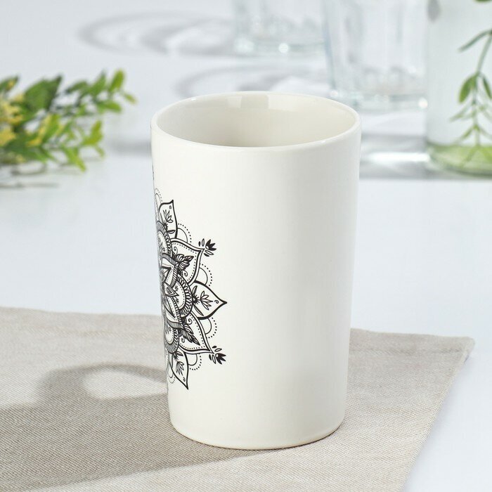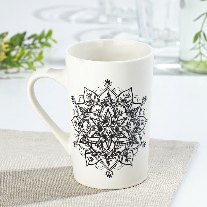 10 цен на Кружка фарфоровая Доляна "Мандала", 380 мл, чёрный узор