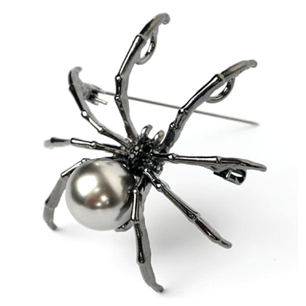 10 цен на Брошь металлическая Паук с бусиной под Жемчуг и черными стразами TOV-0449 основа темно-серебряного цвета 50х45х15 мм, цена за 1 шт.