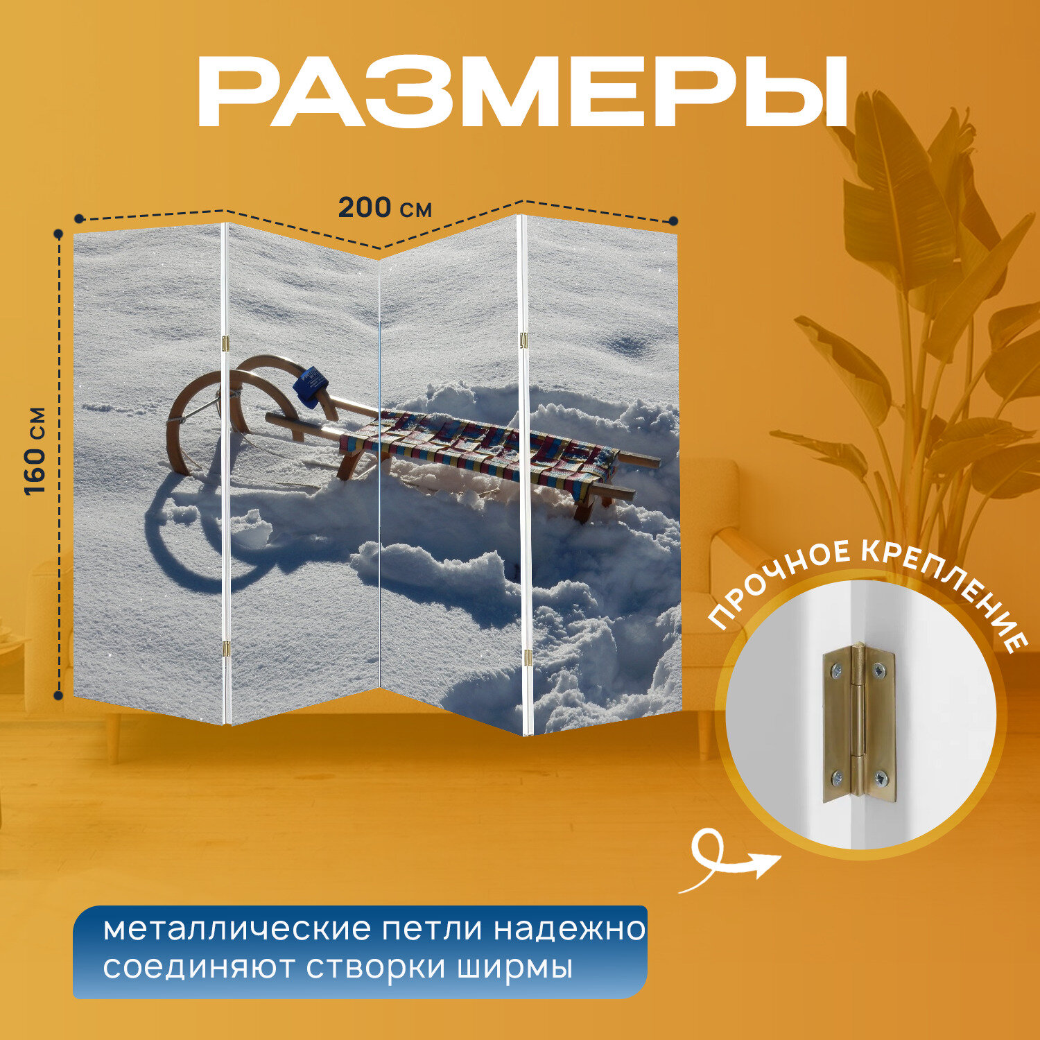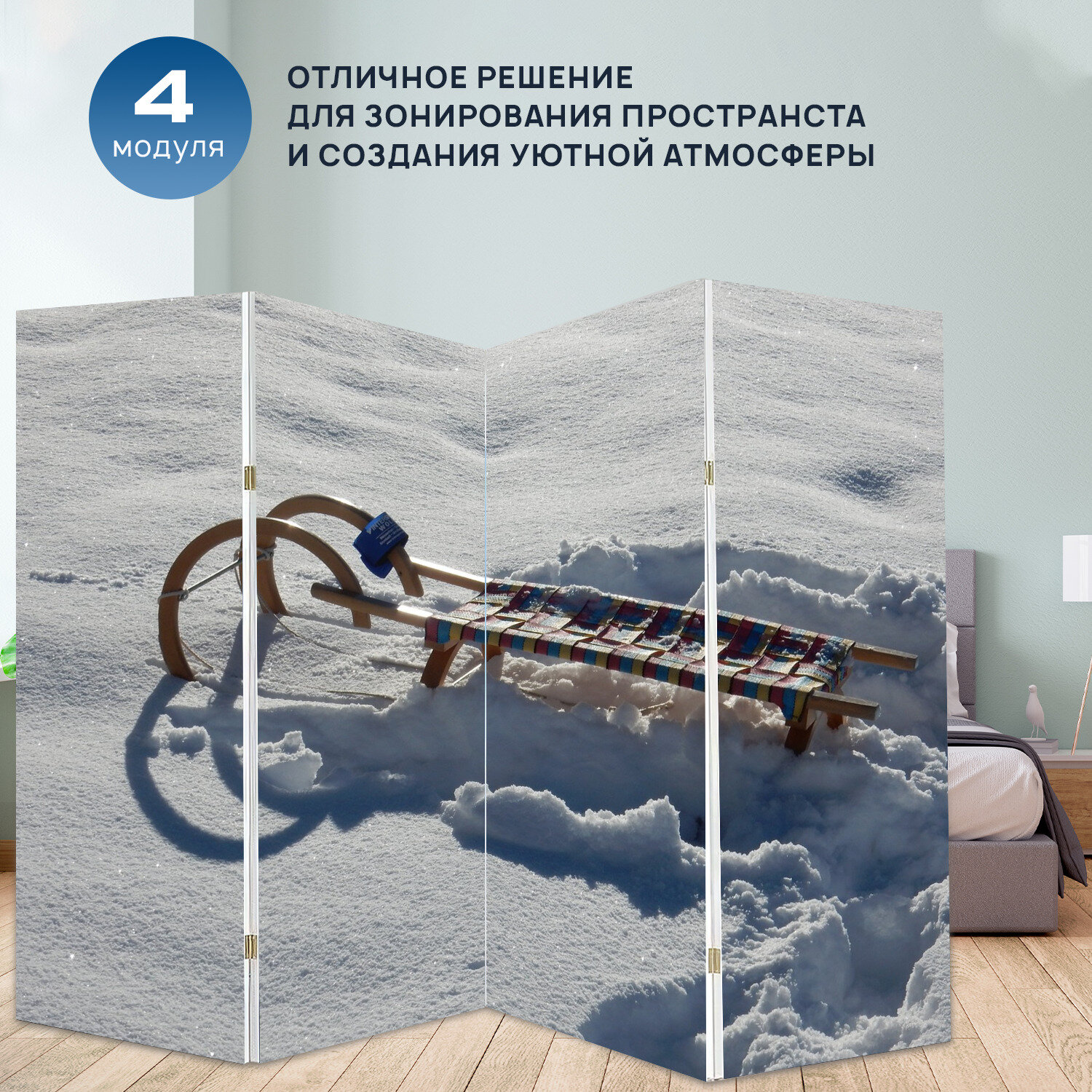 Ширма перегородка с принтом "Зима, снег, транспортное средство" на холсте - 200x160 см. для зонирования, раскладная информация: