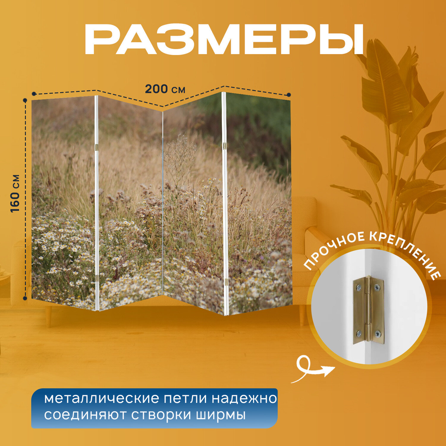 10 цен на Ширма перегородка с принтом "Поля, луг, пастбища" на холсте - 200x160 см. для зонирования, раскладная