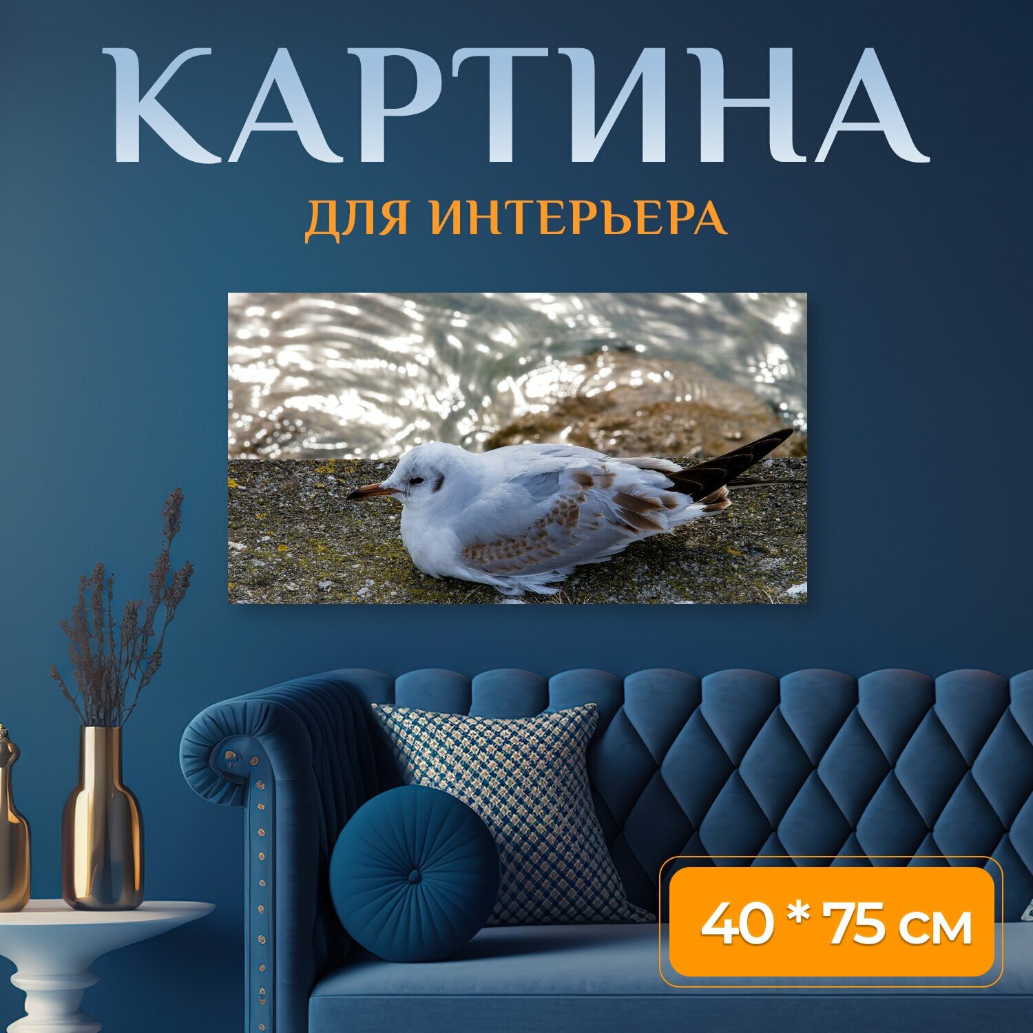 10 цен на Картина на холсте "Чайка, птица, дикая природа" на подрамнике 75х40 см. для интерьера
