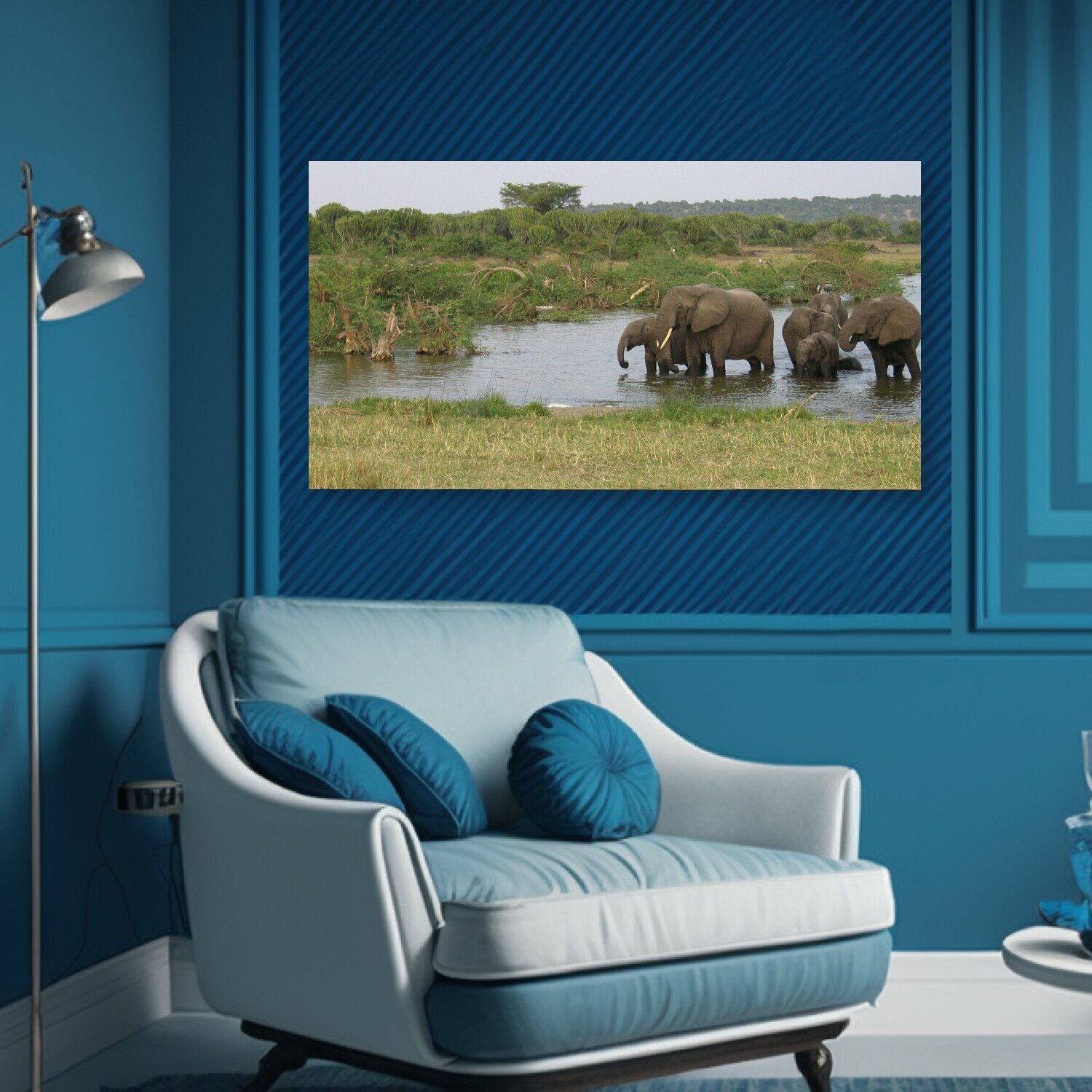 10 цен на Картина на холсте "Слоны, животные, дикая природа" на подрамнике 75х40 см. для интерьера