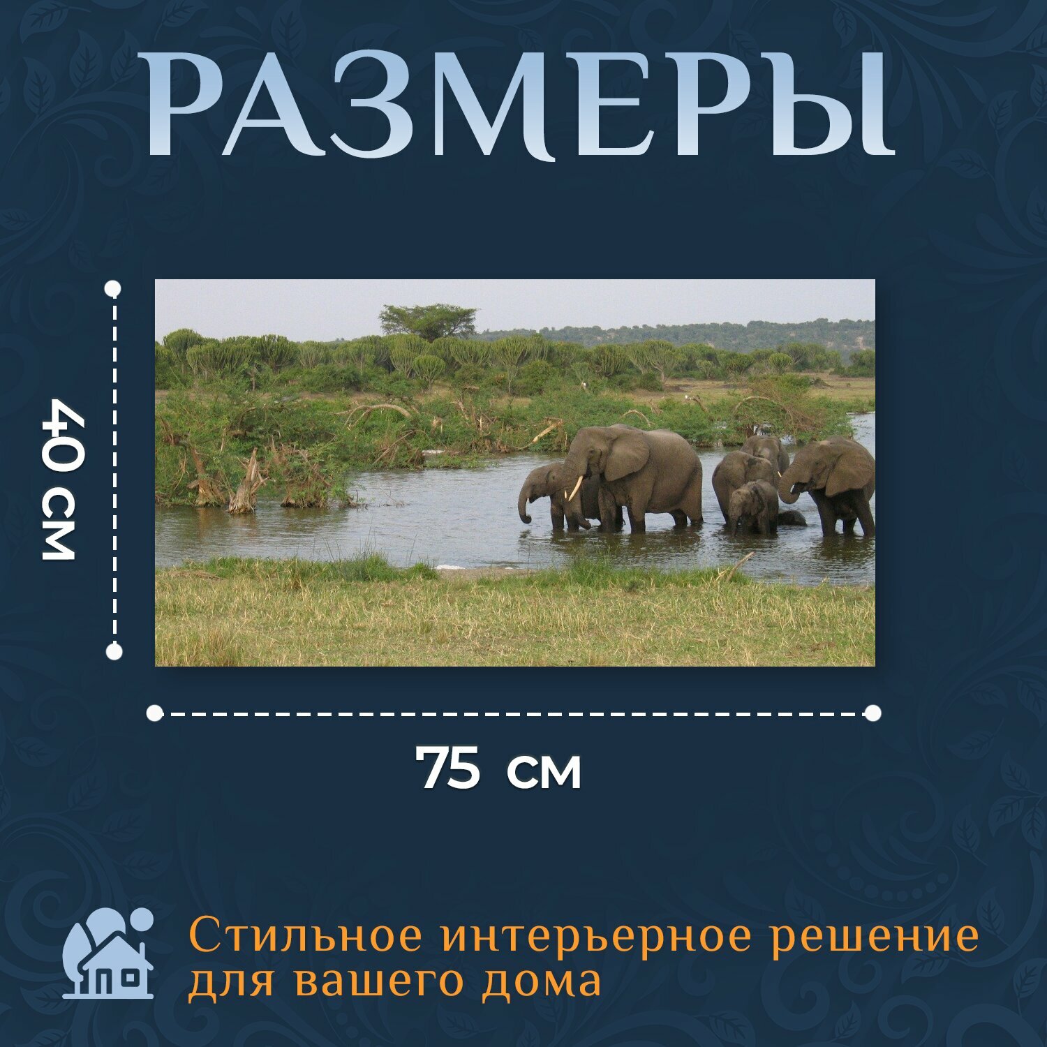 Картина на холсте "Слоны, животные, дикая природа" на подрамнике 75х40 см. для интерьера информация: