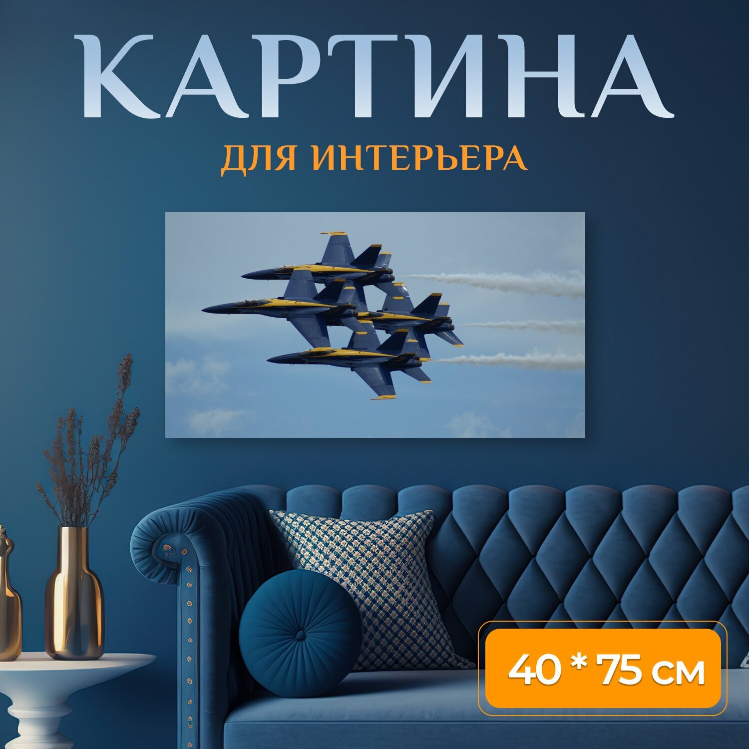 10 цен на Картина на холсте "Голубые ангелы, самолет, небо" на подрамнике 75х40 см. для интерьера