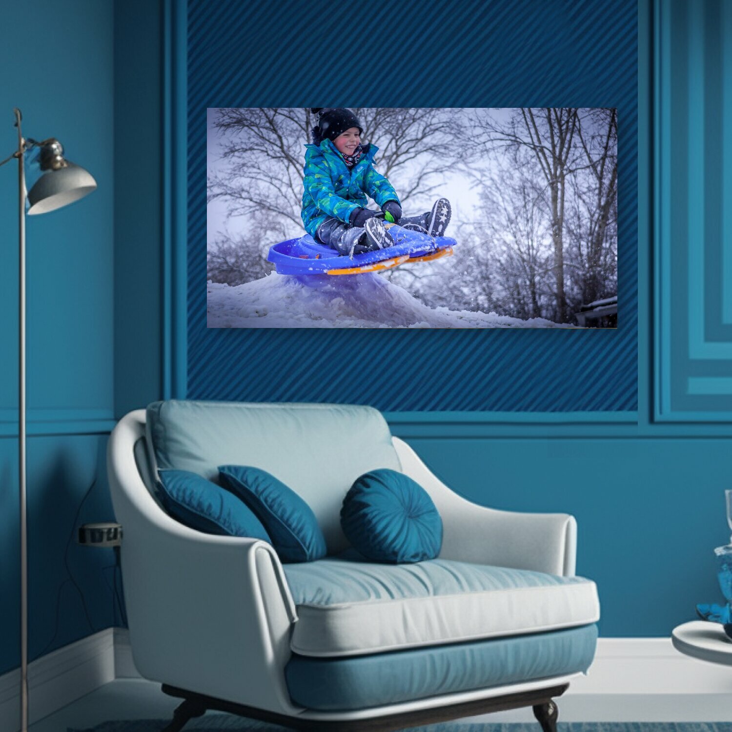 10 цен на Картина на холсте "Ребенок, мальчик, зима" на подрамнике 75х40 см. для интерьера