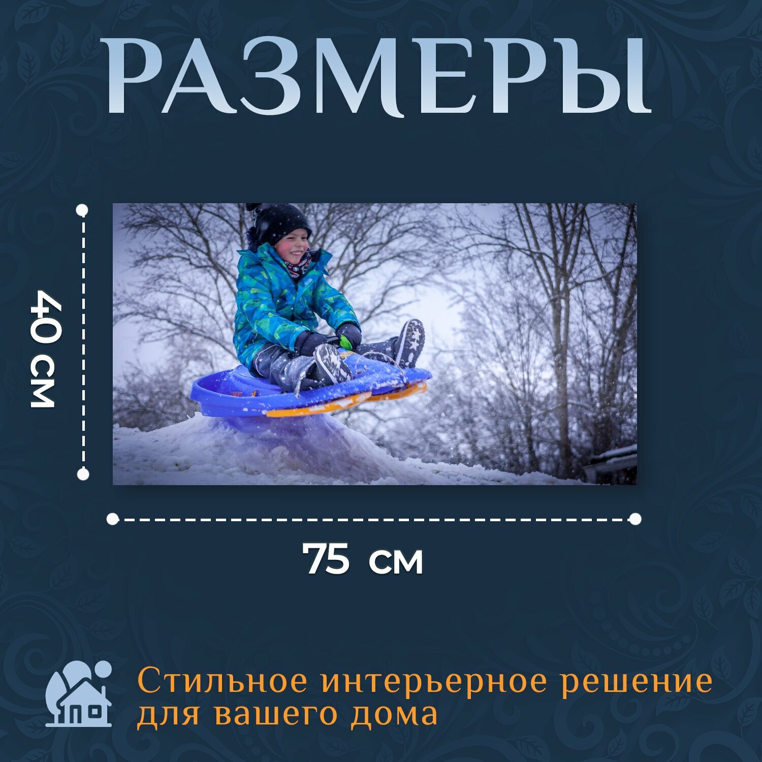 Картина на холсте "Ребенок, мальчик, зима" на подрамнике 75х40 см. для интерьера информация:
