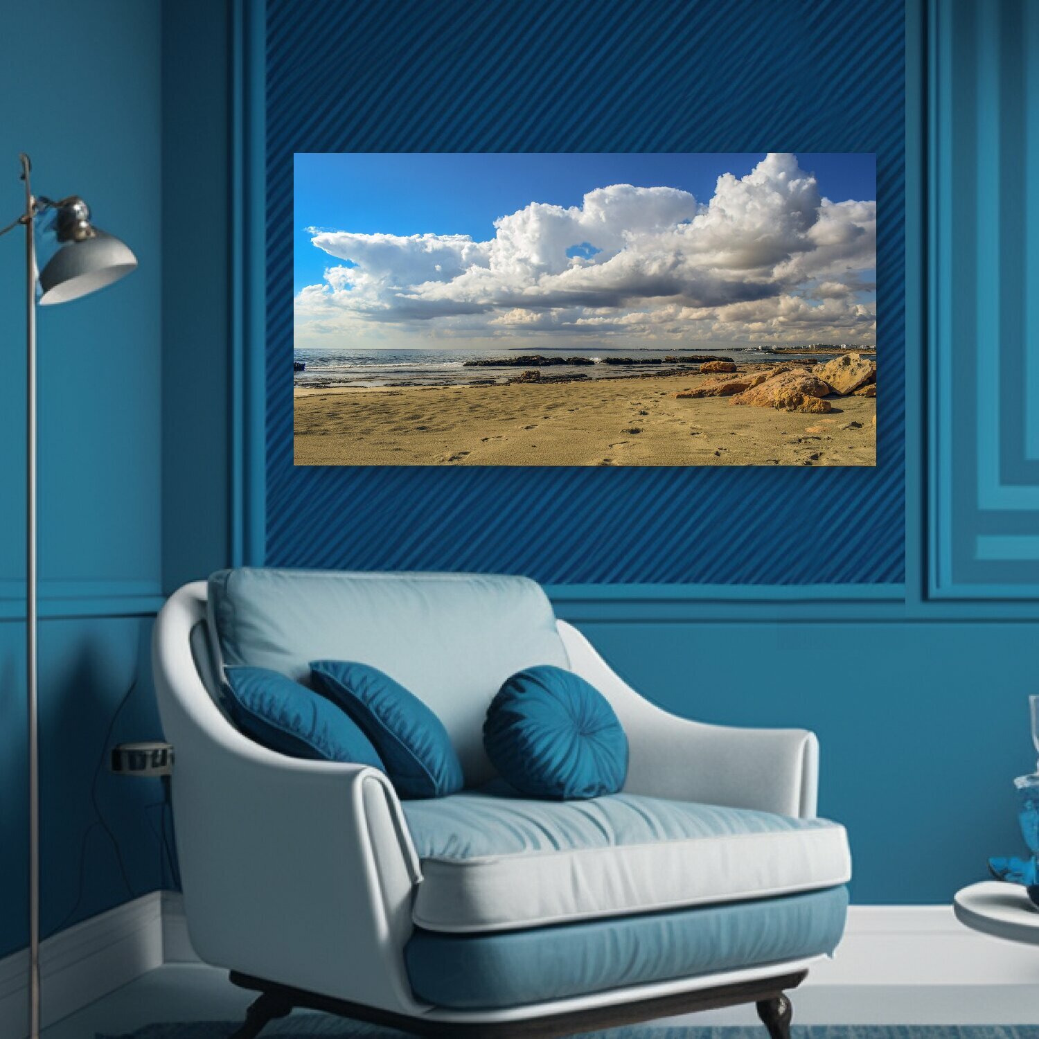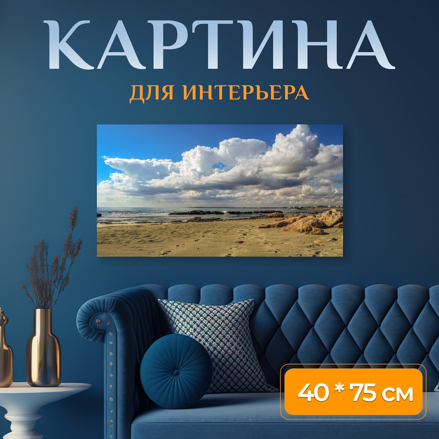10 цен на Картина на холсте "Пляж, песок, небо" на подрамнике 75х40 см. для интерьера