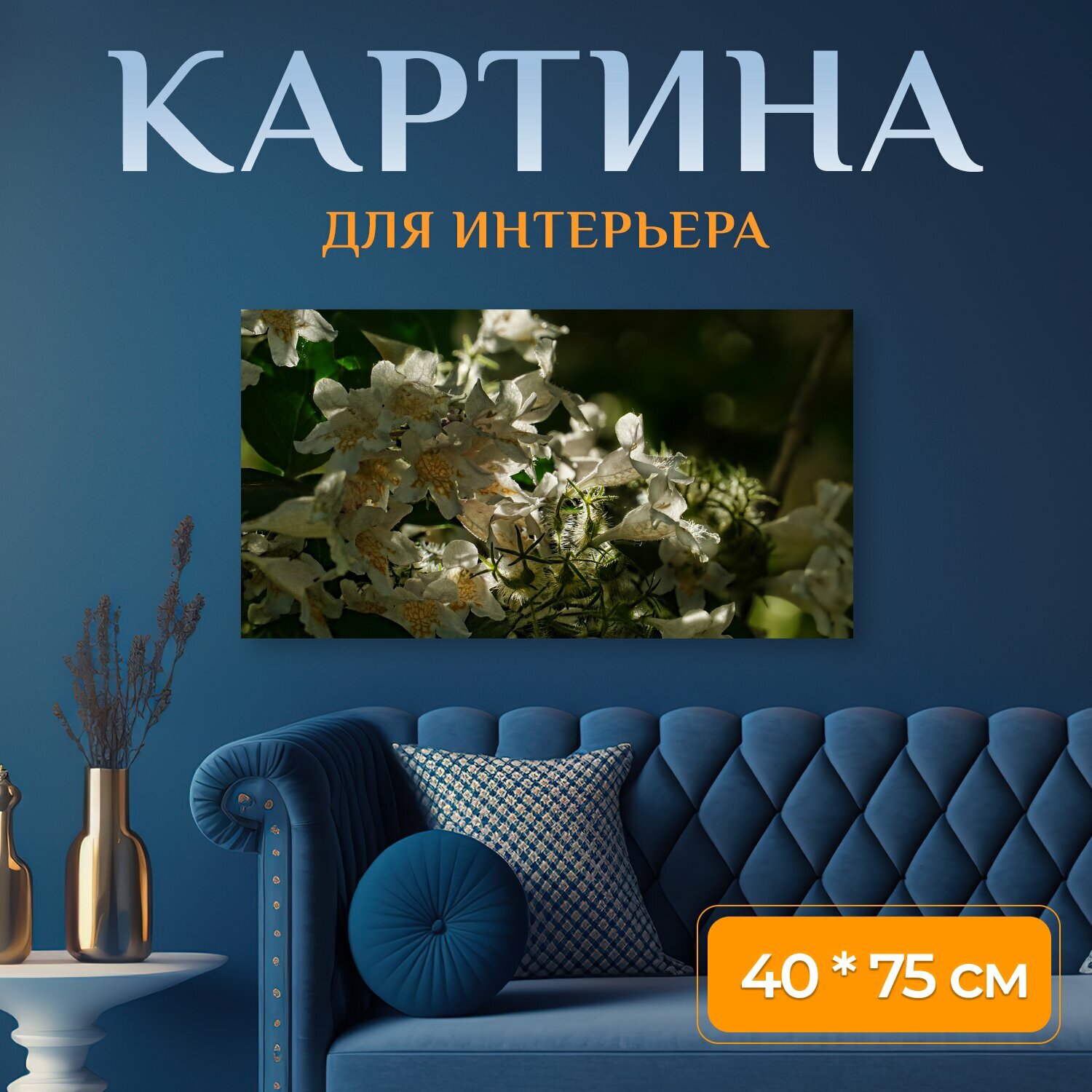 10 цен на Картина на холсте "Весна, цветущий кустарник, подсветка" на подрамнике 75х40 см. для интерьера