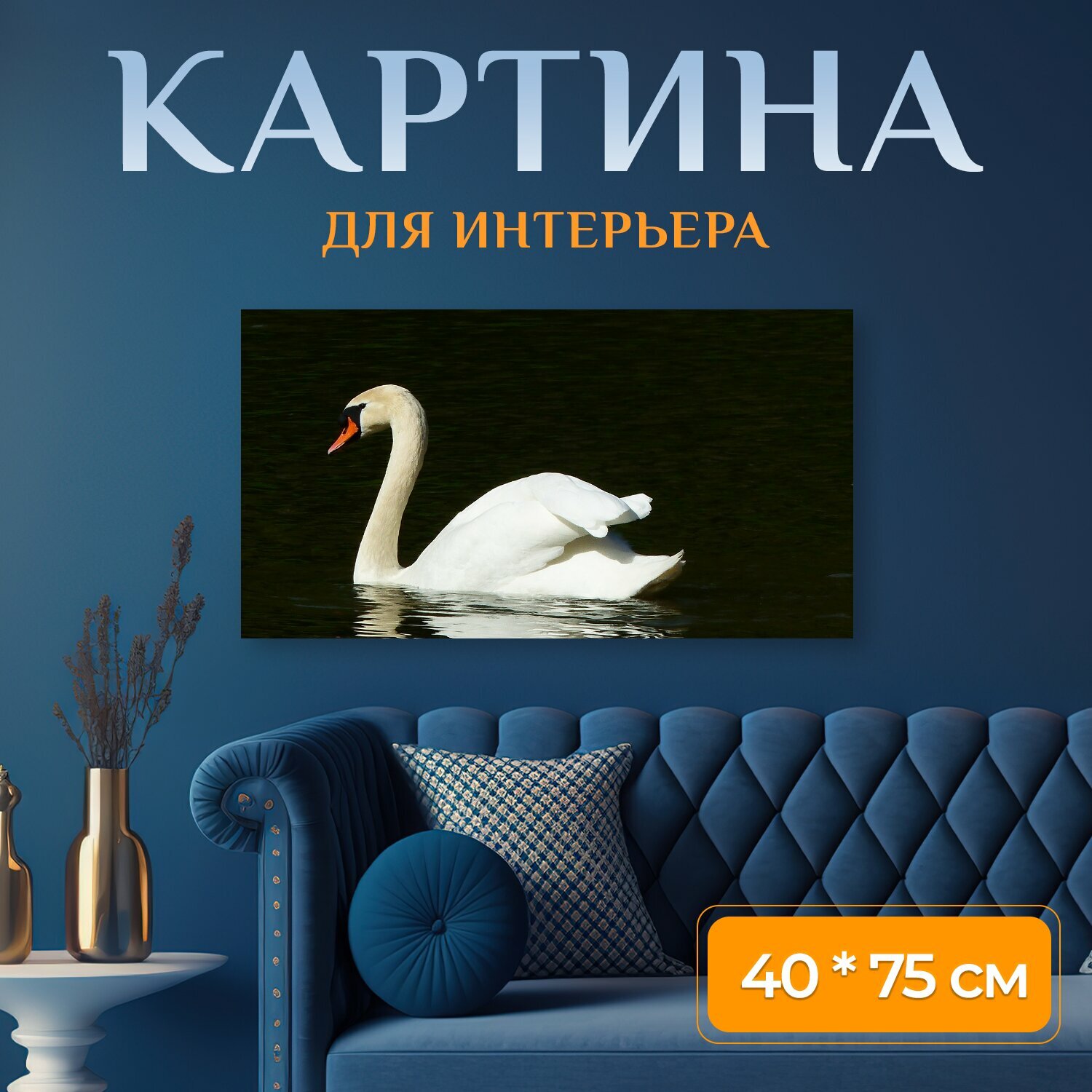 10 цен на Картина на холсте "Лебедь, водное пространство, птица" на подрамнике 75х40 см. для интерьера