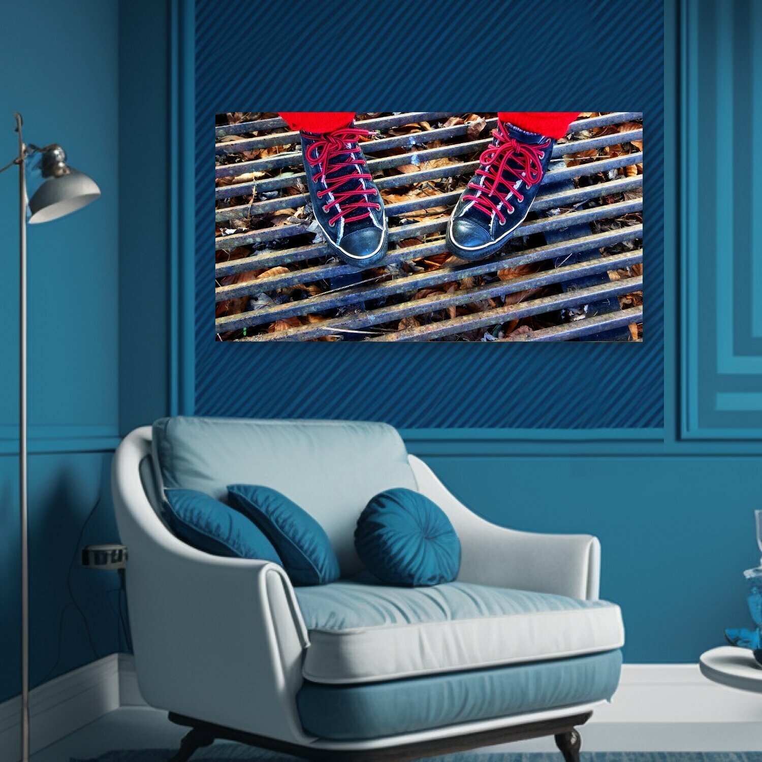Картина на холсте "Ноги, обувь, кроссовки" на подрамнике 75х40 см. для интерьера информация: