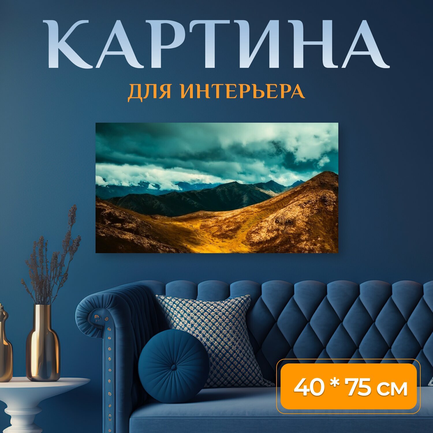 10 цен на Картина на холсте "Аляска, заход солнца, горы" на подрамнике 75х40 см. для интерьера