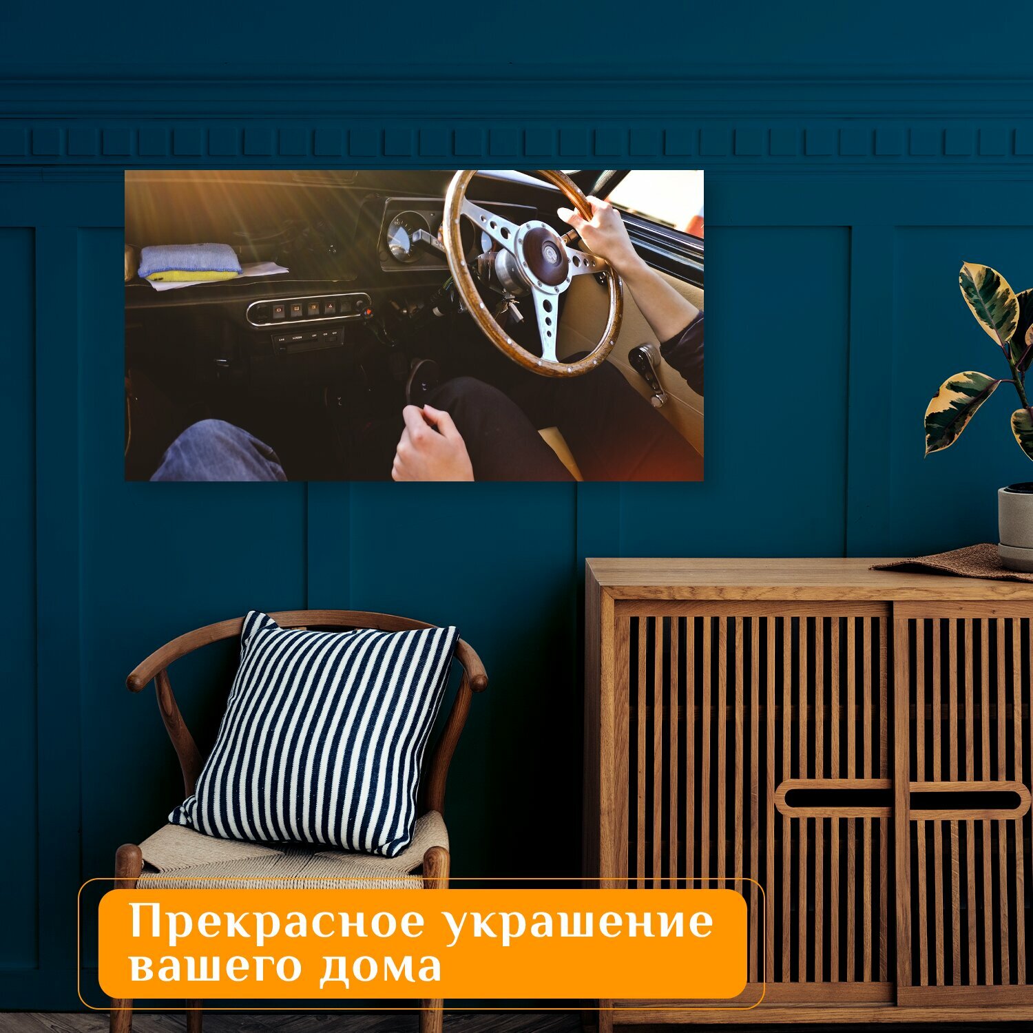 10 цен на Картина на холсте "Машина, вождение, рулевое колесо" на подрамнике 75х40 см. для интерьера