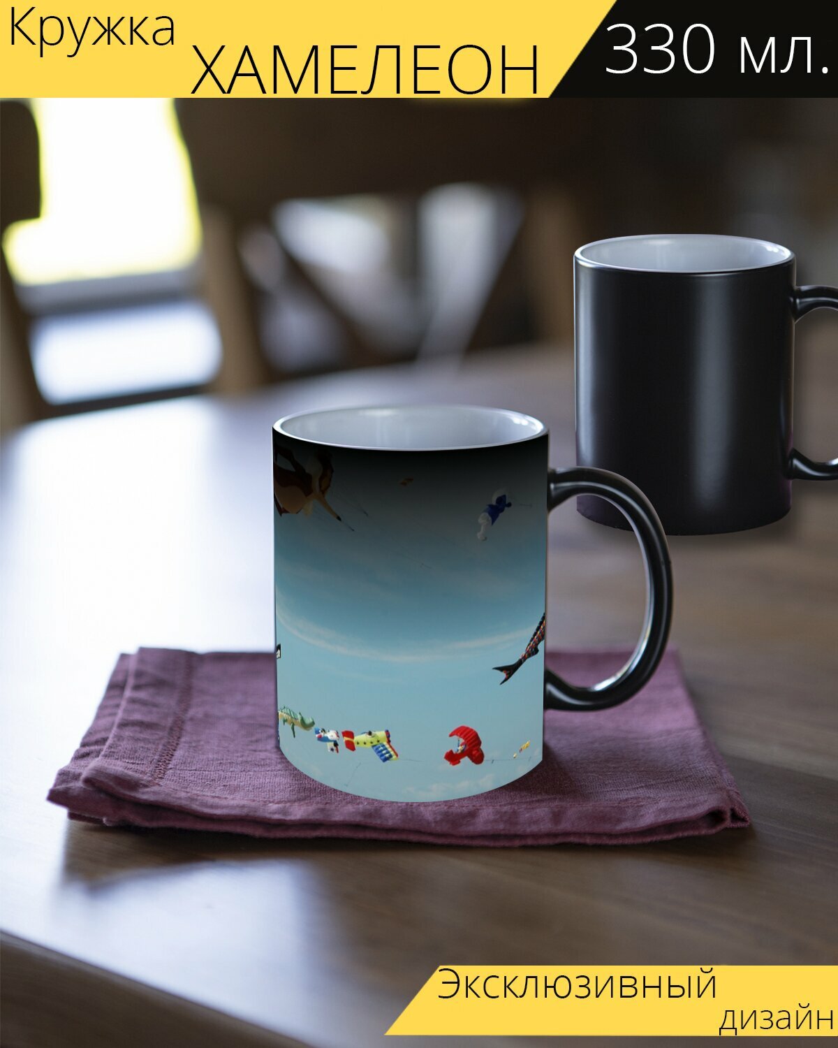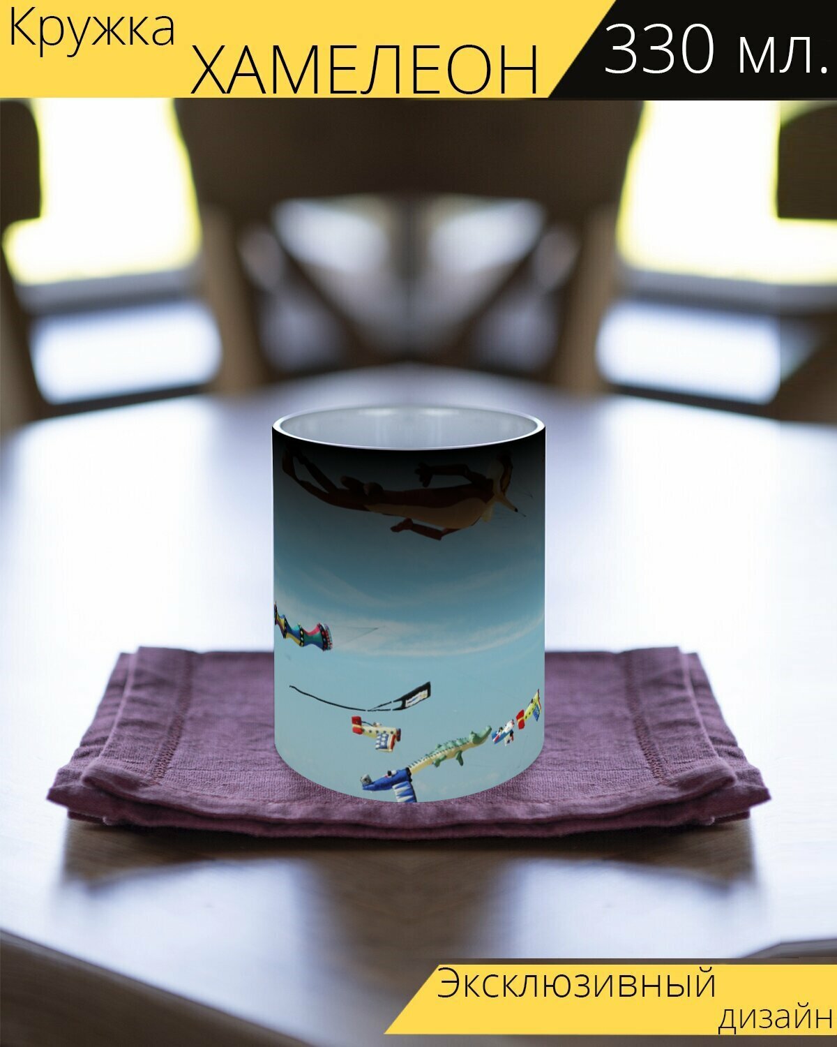 10 цен на Кружка хамелеон с принтом "Летающий змей, пляж, колыбель" 330 мл.