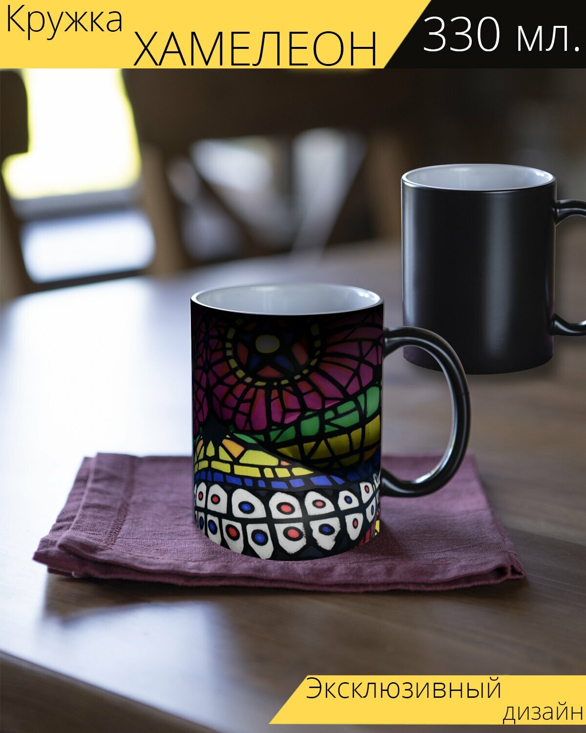 Кружка хамелеон с принтом "Партия, музыка, праздновать" 330 мл. информация: