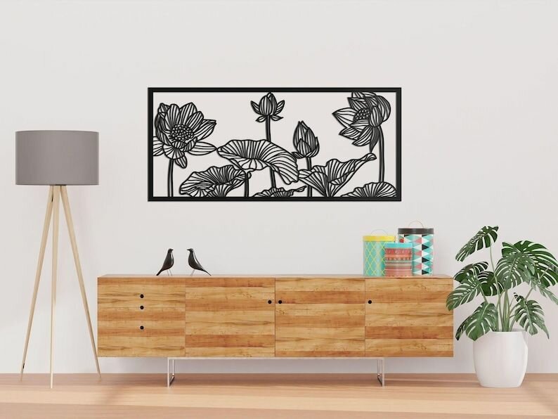 10 цен на Чертеж, декоративное панно, Цветы лотоса (черный цвет), DXF для ЧПУ станка