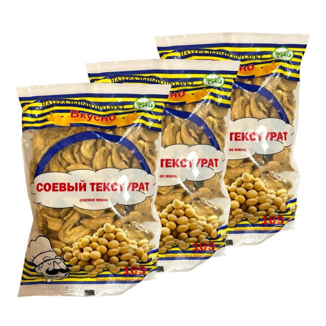 10 цен на Натуральное соевое мясо кусочки (соевый текстурат) / 100 гр х 3 упаковки