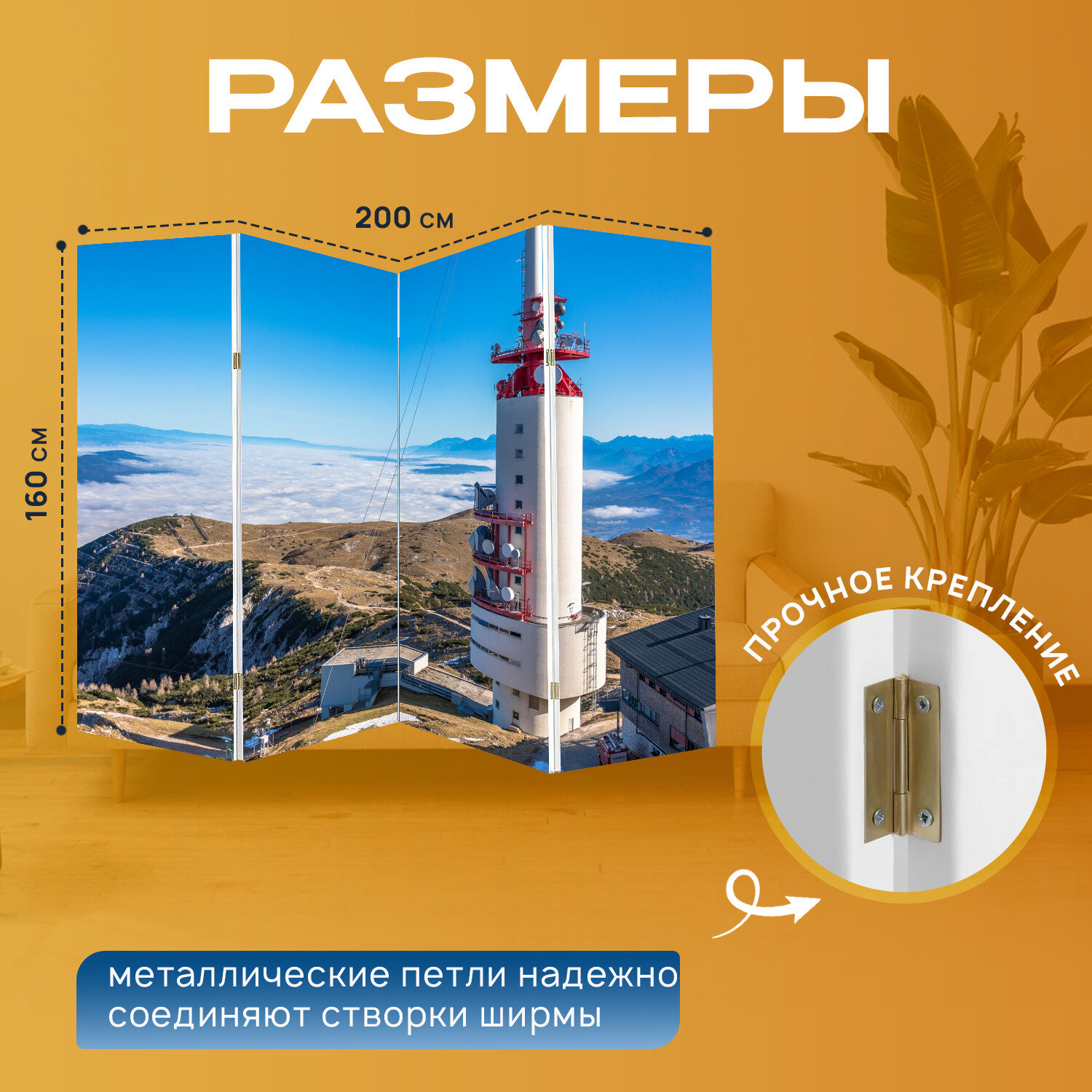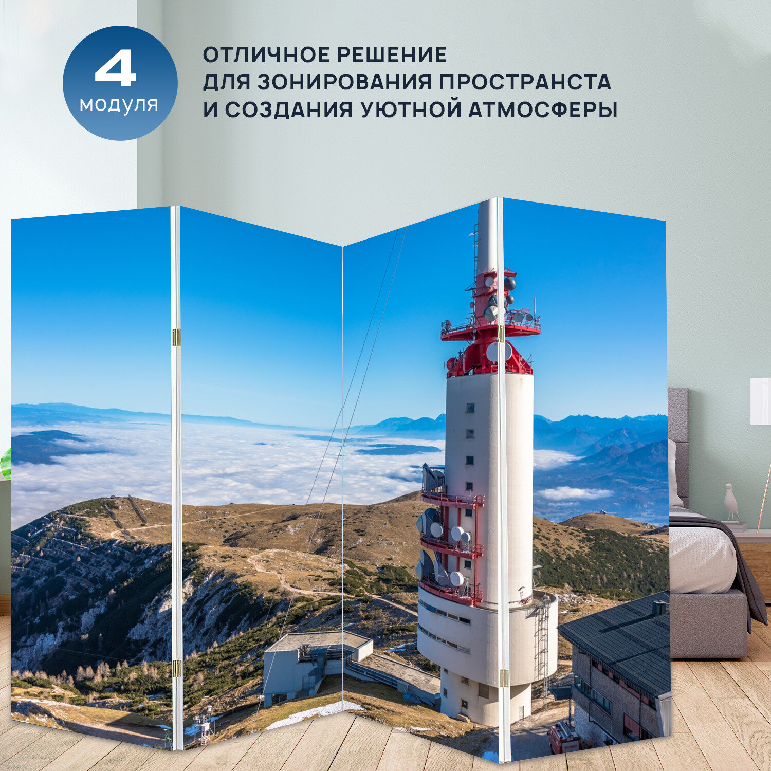 Отзывы на Ширма перегородка с принтом "Гора, саммит, канал" на холсте - 200x160 см. для зонирования, раскладная