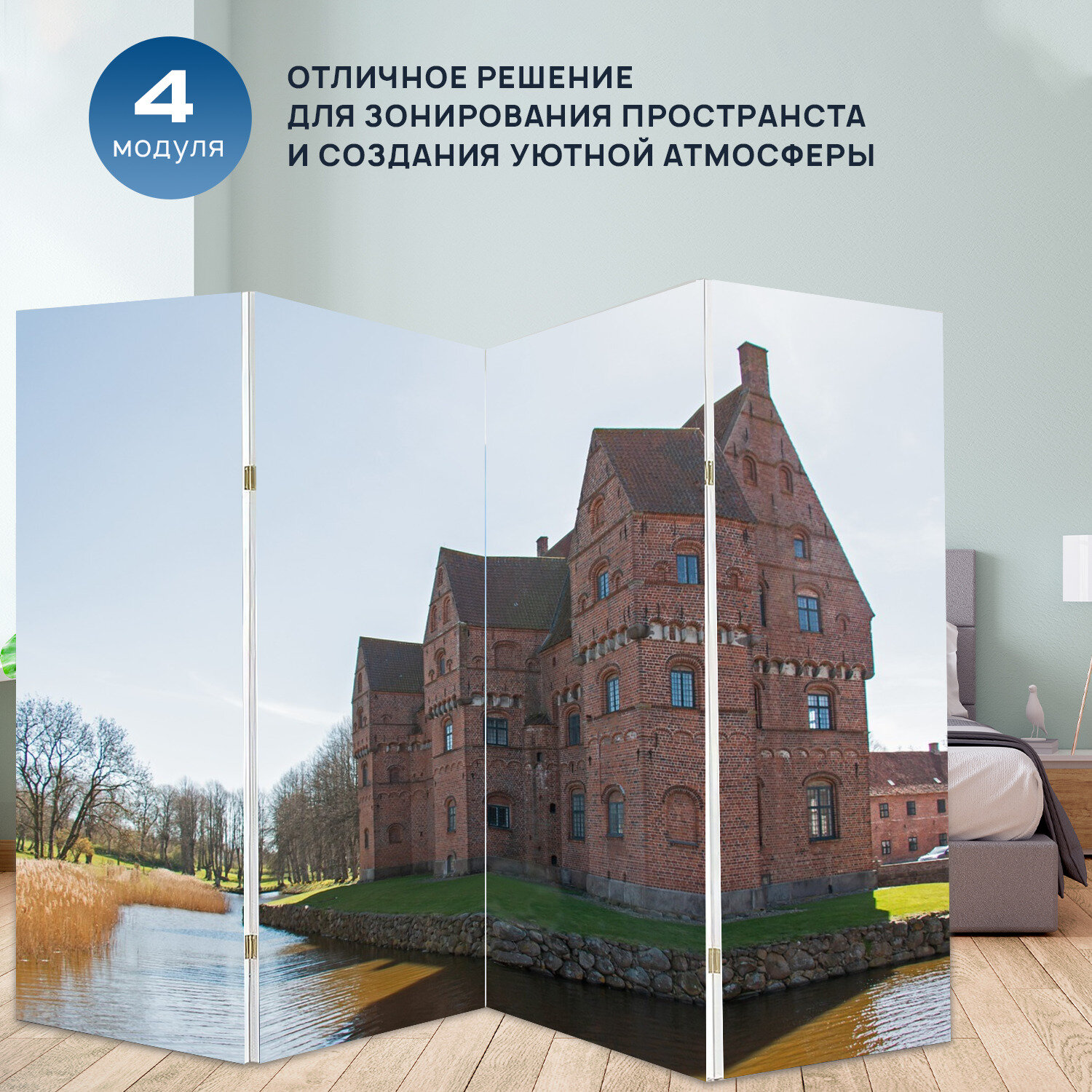 Ширма перегородка с принтом "Замок, ров, строительство" на холсте - 200x160 см. для зонирования, раскладная информация: