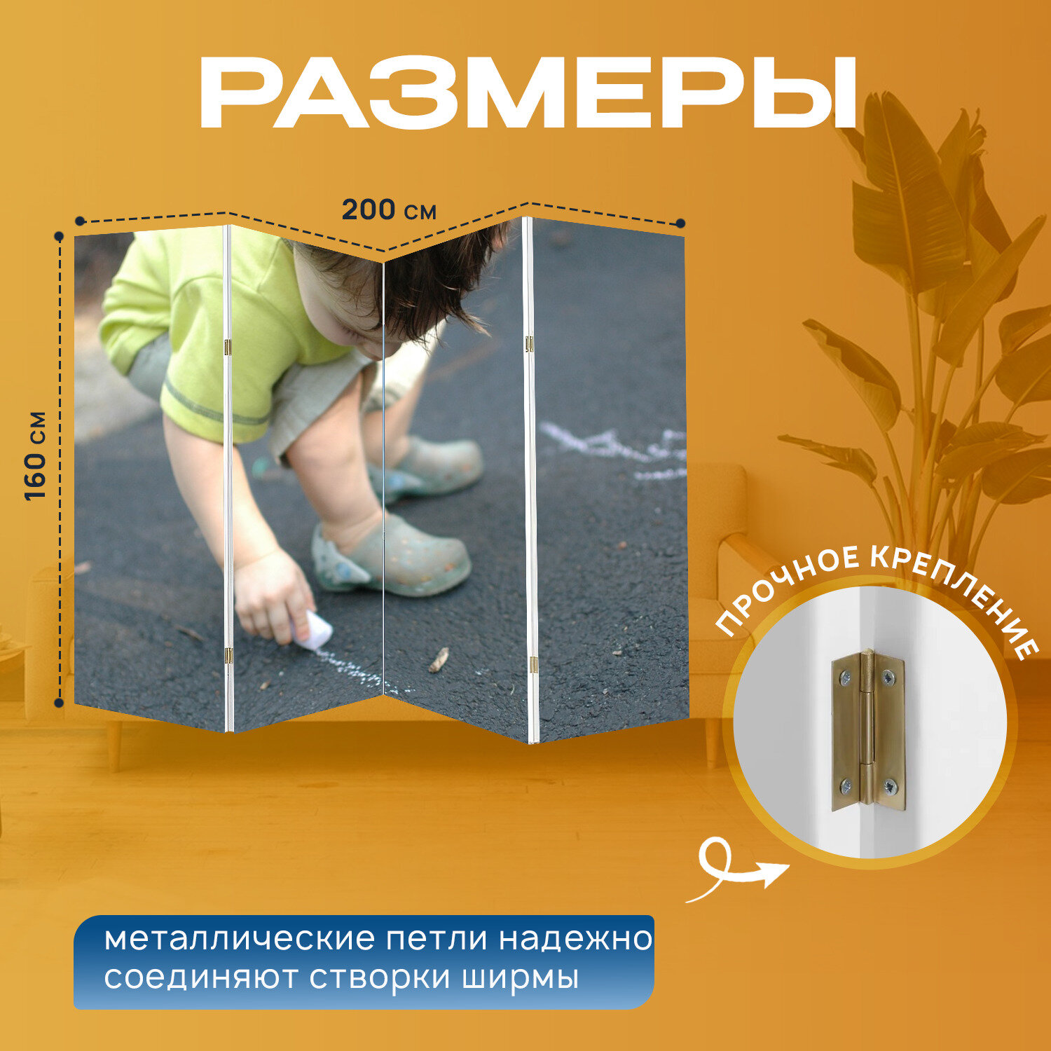 Ширма перегородка с принтом "Мальчик, рисование, ребенок" на холсте - 200x160 см. для зонирования, раскладная информация: