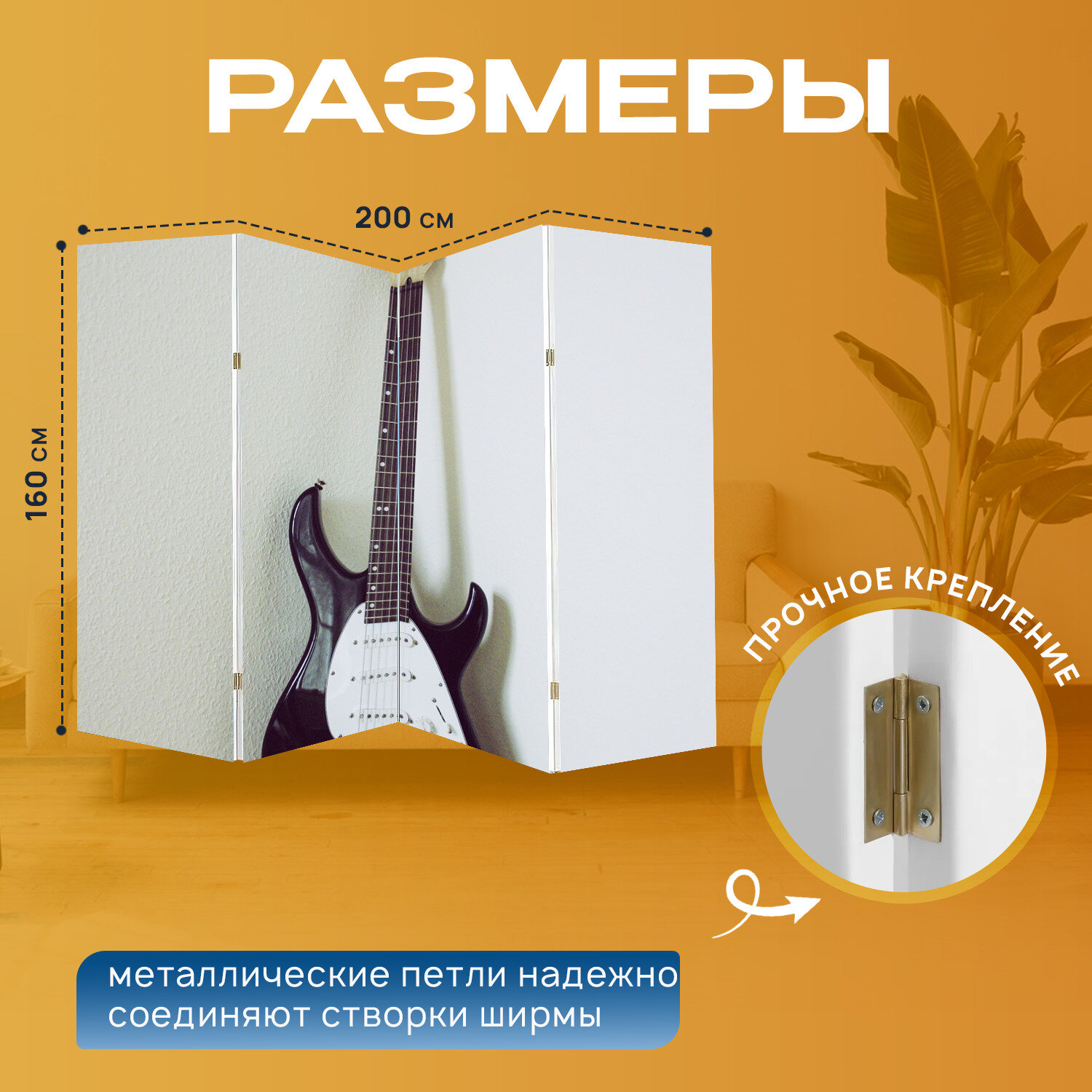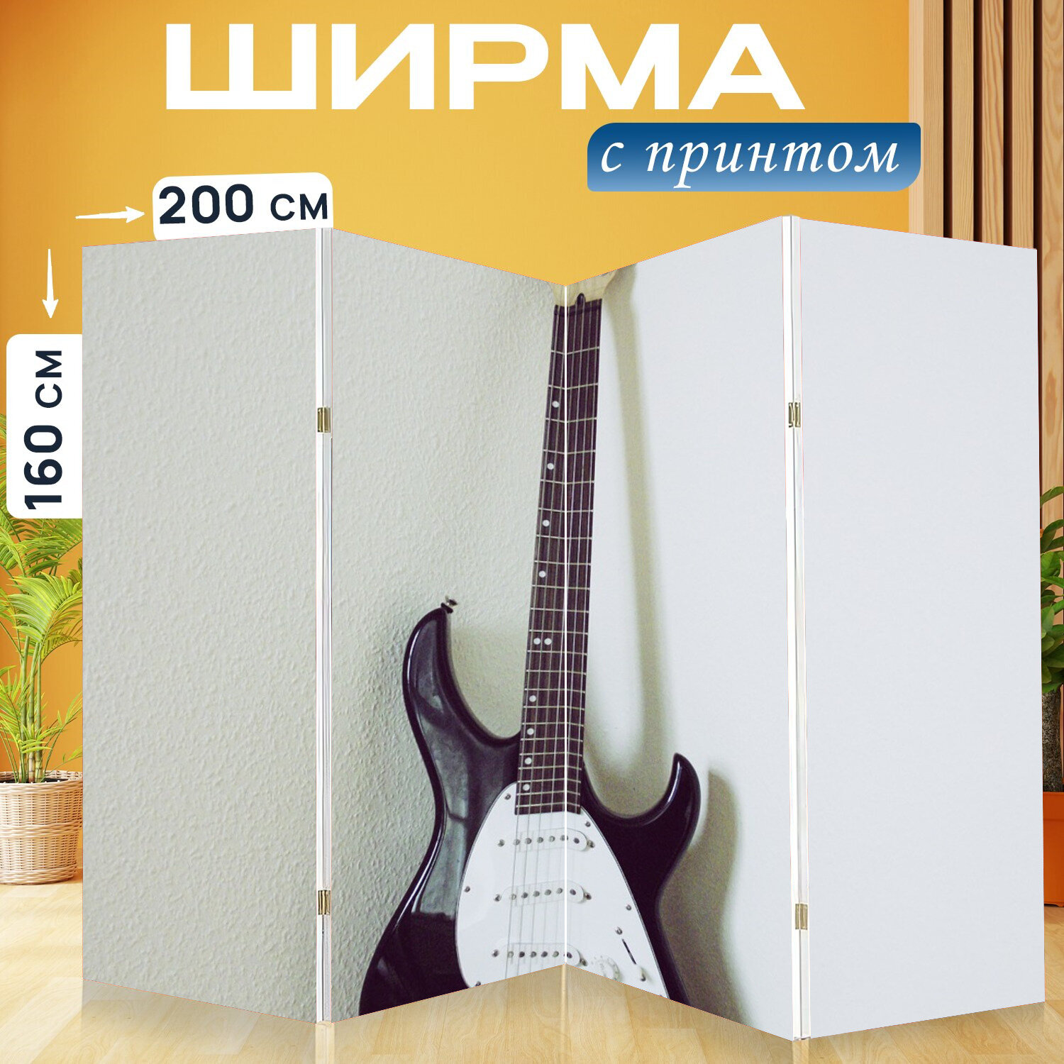 Отзывы на Ширма перегородка с принтом "Гитара, музыка, звук" на холсте - 200x160 см. для зонирования, раскладная