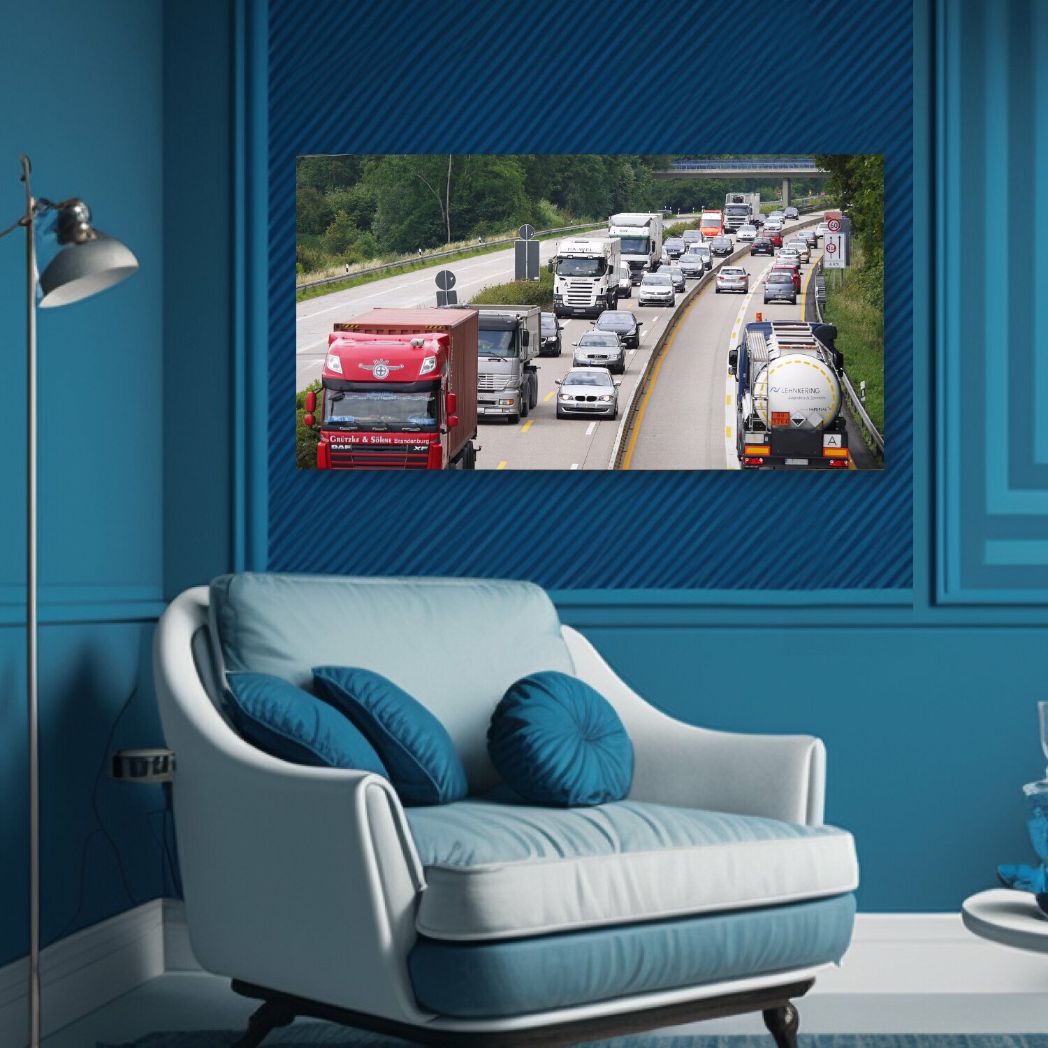 10 цен на Картина на холсте "Шоссе, строительная площадка, суженный" на подрамнике 75х40 см. для интерьера