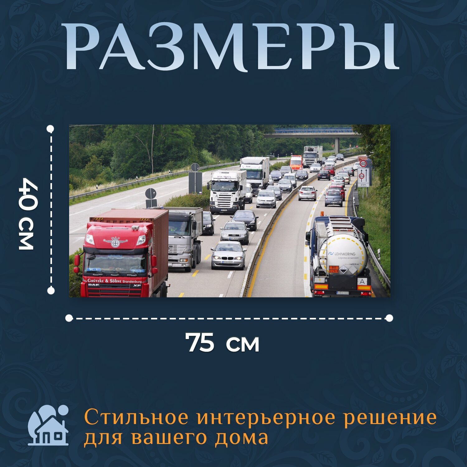 Картина на холсте "Шоссе, строительная площадка, суженный" на подрамнике 75х40 см. для интерьера информация: