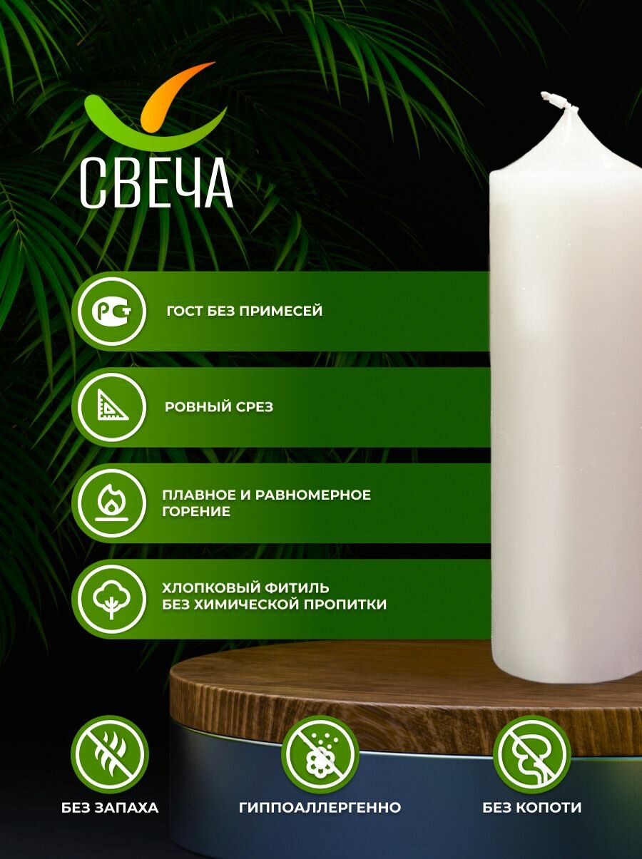 10 цен на Белоснежная свеча из кокосового воска 145 гр. 14.5х4 см. 3 шт.