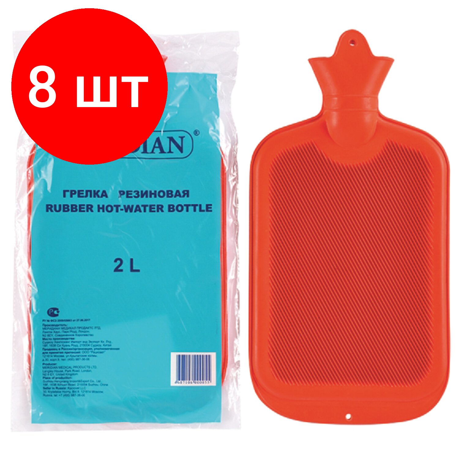 Комплект 8 шт, Грелка резиновая, объем 2 л, MERIDIAN информация: