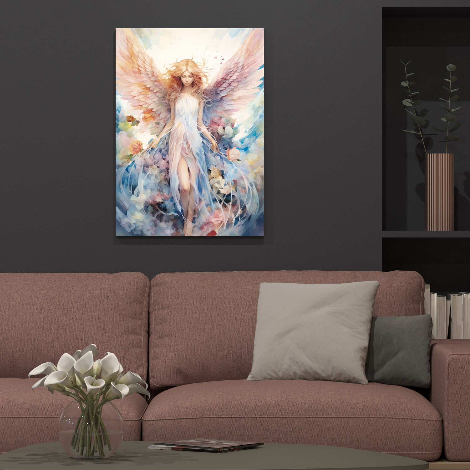Интерьерная картина 50х70 "Ангел с крыльями из перьев"" информация: