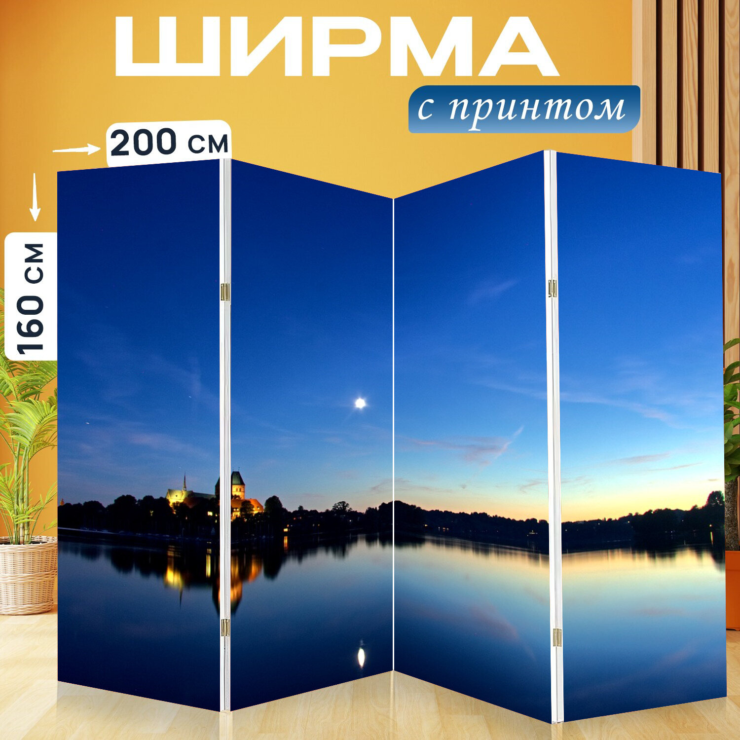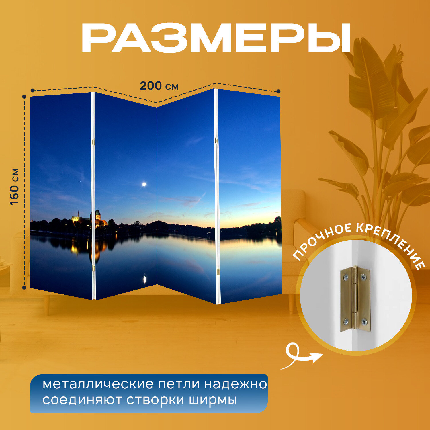 Ширма перегородка с принтом "Рацебург, озеро, дом" на холсте - 200x160 см. для зонирования, раскладная информация: