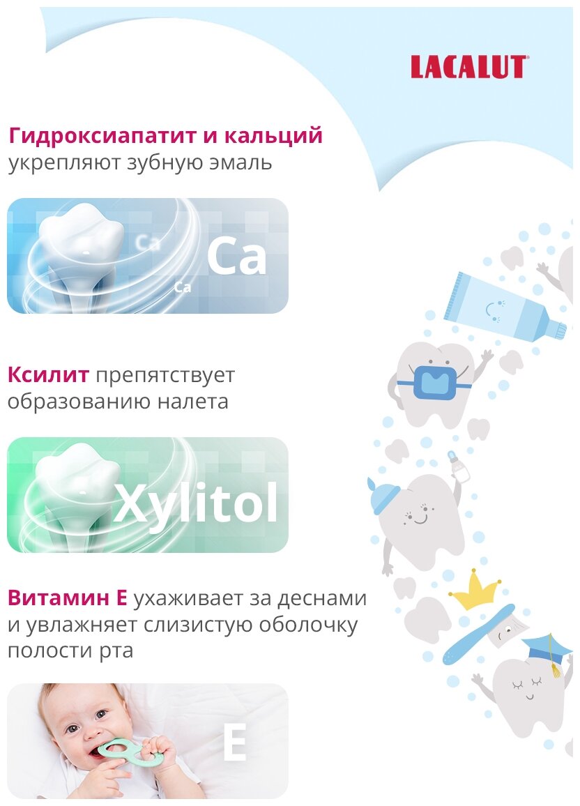 Зубная паста Lacalut Baby от 0 до 2 лет детская защита от кариеса и укрепление эмали, 65 г