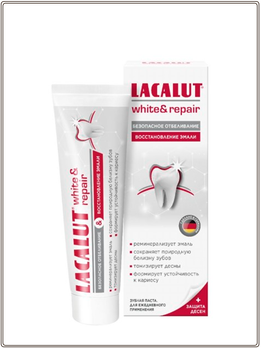Зубная паста + щетка Lacalut White & Repair + Model Club красно-белая
