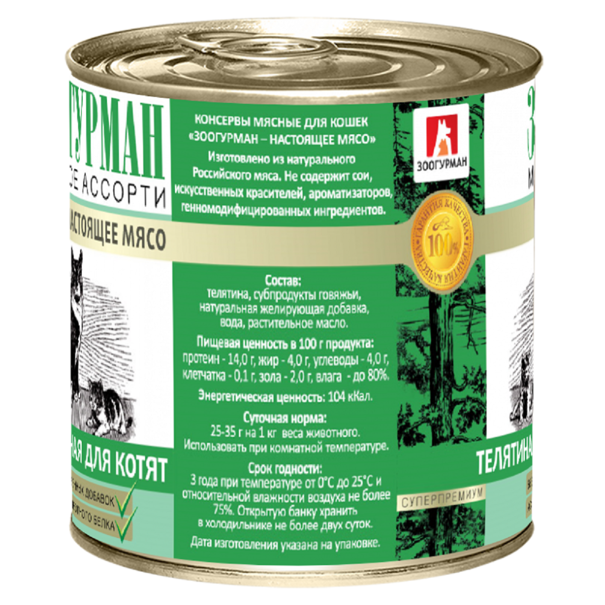 Зоогурман для котят Мясное ассорти Телятина нежная, консервы 250г (15 банок)