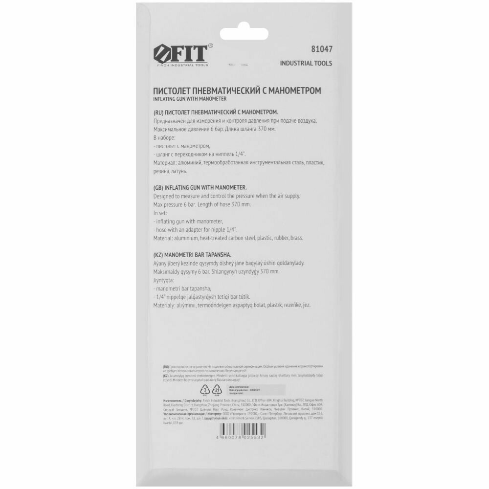 Пневмопистолет с манометром, быстросъемное соединение FIT 81047 информация: