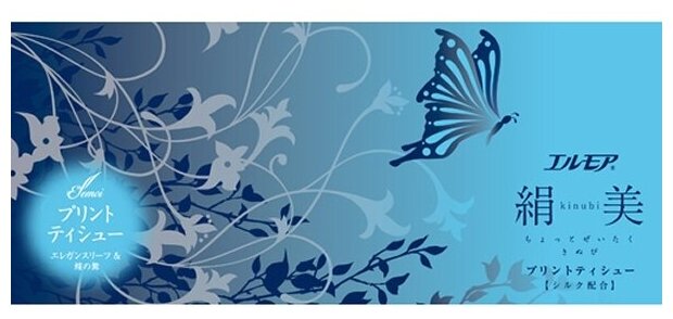 Салфетки бумажные с шелком, бумажные салфетки в коробке двухслойные Kami Shodji ELLEMOI "Kinu-bi", 200 шт, Япония информация: