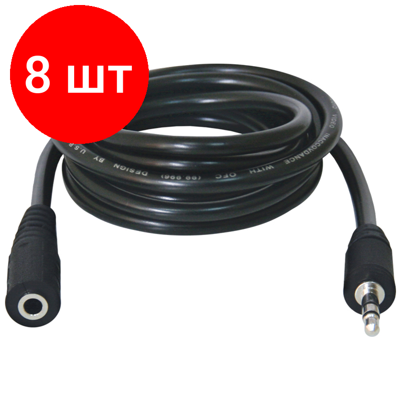 Комплект 8 шт, Кабель удлинительный Defender JACK02-05 аудио JACK (M) - JACK (F), 1.5м, черный информация: